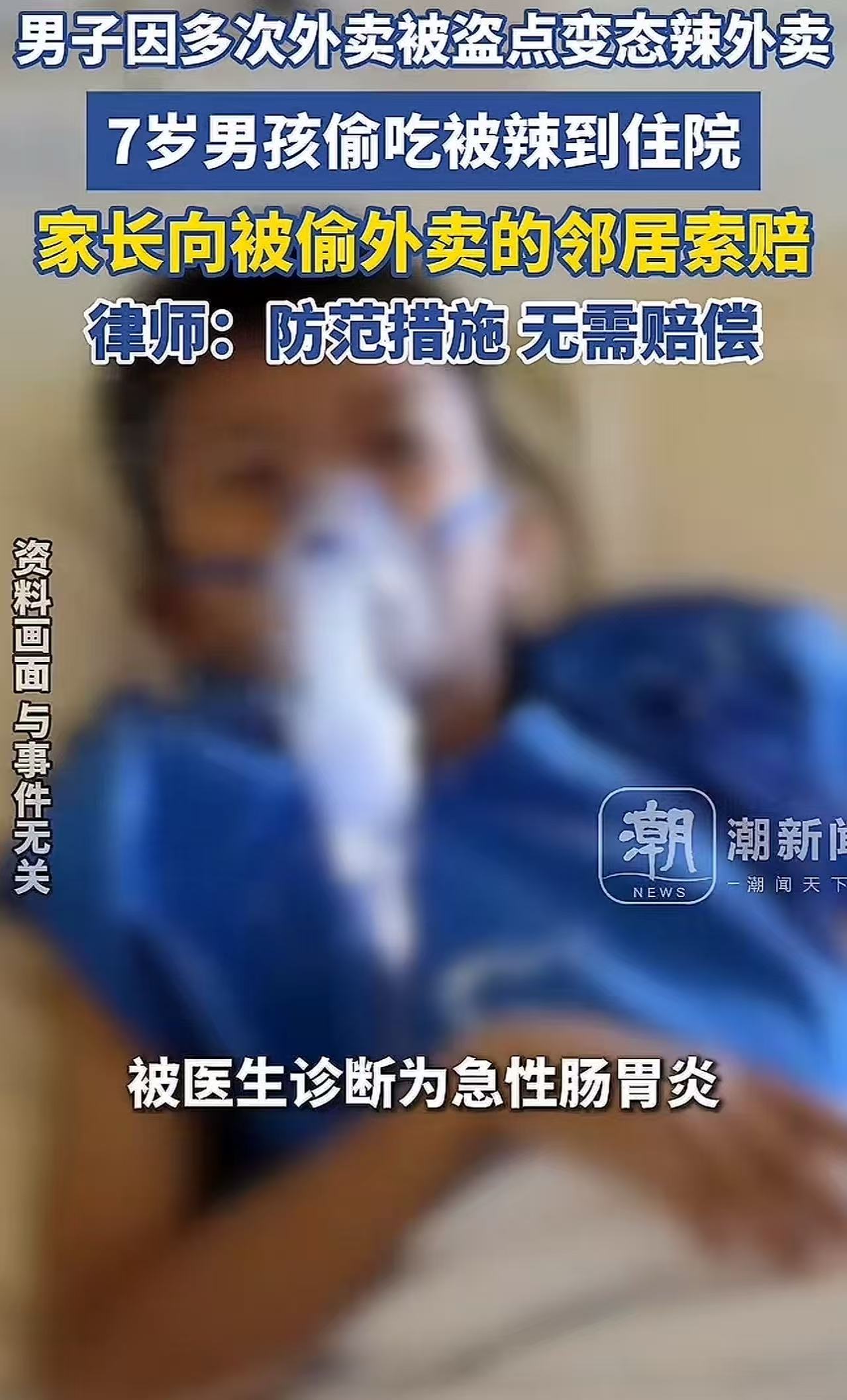 7岁男孩偷吃邻居“变态辣”外卖后住院,出现剧烈腹痛、呕吐等症状!家长向外卖主人索赔!网友:这种家长怎么好意思的,自己孩子偷窃还状告失主?