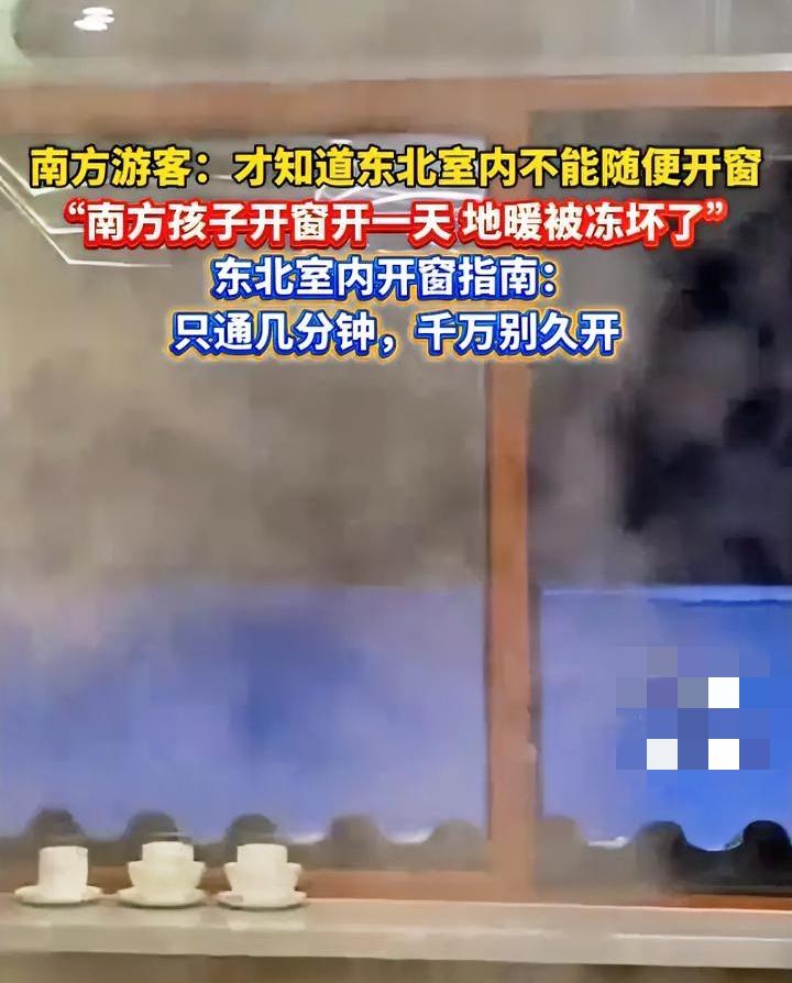 南方游客来东北玩,窗户开了一天,把地暖冻坏了,又有人要为“知识盲区”买单了。 如今该旅店老板娘每遇到一位南方游客,都要细心叮嘱一番。 东北屋子里确实热、不透气,开窗通风也就几分钟而已,你开了一整天,别说老板娘找你赔钱,供热公司都得找你聊聊。 这就是典型的缺乏生活常识,东北室内外温差几十度,地暖里都是水,开窗时间久了肯定要冻坏了。 所以大家来东北玩的时候一定要注意了,不仅人要保暖,屋子也一样要保暖。