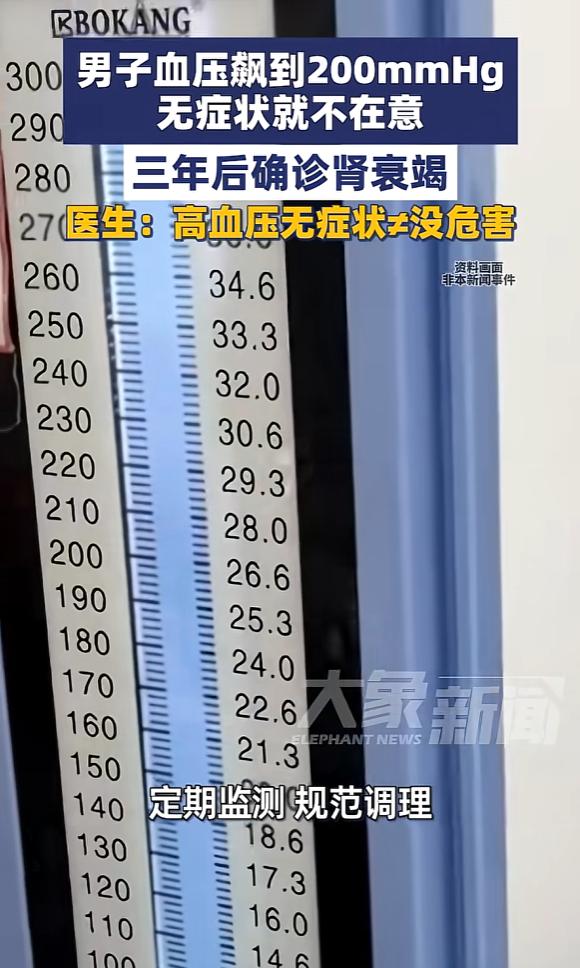 近日,河南郑州,一男子血压长期高达200mmhg,却因为没有任何不适症状,所以一直没管,结果最近,他的双腿开始浮肿,稍微活动就喘不上气,去医院检查,竟被确诊为肾衰竭!医生:无症状不等于没有危害! 麻烦各位读者点一下右上角的“关注”,留下您的精彩评论与大家一同探讨,感谢您的强烈支持! 在忙碌的生活节奏中,很多人总觉得身体没啥大碍就无须担心健康问题。河南郑州一名中年男子的经历,却给了所有人当头一棒。 三年前,他在单位组织的体检中发现血压偏高,数值竟然超过了200mmHg,这已经远远超出正常范围。 体检医生当时苦口婆心建议他复查、规范治疗,但男子却觉得自己精力充沛、没有头痛、没有心悸,生活一切如常。 对于突如其来的“高血压”标签,他不仅没有重视,反而怀疑是仪器出了问题,于是继续按照自己的生活方式作息、饮食。 时间一晃就过去了三年。男子依然没有出现什么明显的不适,每天上班下班,偶尔还和朋友聚餐喝酒,一切似乎平淡如常。 直到最近几周,他突然发现双腿开始出现浮肿,尤其是傍晚回家时,小腿肚按下去会留下一道印痕,久久不消退。起初,他以为是工作太累导致的水肿,想着多休息一下就能缓解。 然而,没过几天,新的问题接连出现。楼梯还没爬几步就气喘吁吁,心跳加速,连日常散步都觉得力不从心。 家人见状,劝他赶紧去医院检查。这一次,医生的话让全家人都陷入了沉重的气氛:肾功能严重受损,已经发展到肾衰竭的地步。高血压带来的“后遗症”终于浮出水面,而且已经无可逆转。 接诊医生详细了解了他的生活和病史后,感慨万分。他说,高血压是最典型的“沉默杀手”,早期几乎没有症状,但潜在的危害却一直在悄悄累积。 血压长期过高,会不断冲击心脏、肾脏和脑部细小血管,慢慢地损伤这些重要器官。等到出现浮肿、气促等症状时,往往意味着器官已经出现了不可逆的损伤。男子的例子,就是一个“健康假象”下的警钟。 其实,这样的现象在中国中老年人群中尤为普遍。很多人对慢性病的认知还停留在“没感觉就没事”的阶段,忽略了体检发现的异常信号。 尤其是在河南等地,重口味饮食、高盐高油的习惯也让高血压发病率居高不下。相关部门一直呼吁30岁以上人群定期测血压,目的就是让大家早发现、早预防,别等到身体出大毛病才追悔莫及。 男子的遭遇引发了不少探讨。有人觉得现代人压力大,顾不上体检和自律生活;也有人说农村、城市的健康观念差异大,基层医疗宣传还不够。 其实,不管身处何地,健康问题都不该等症状严重才去重视。高血压只是慢性病的一种典型代表,背后折射出的是现代社会中对健康管理的普遍短视。 这起事件对社会的启示意义很大。健康管理不能只看“感觉”,定期体检、监测血压是对自己和家人的负责。 慢病防控需要全社会共同参与,不仅是医生和患者的事。社区、单位、家庭都应该强化健康知识普及,让每个人都知道高血压、糖尿病等慢性病的真正危害。 面对无症状疾病,要放下侥幸心理,及时接受医学干预。血压药物并非“有病才吃”,而是用来防患于未然。 男子如今正在接受系统治疗。虽然肾功能已无法完全恢复,但他坦言,自己最大的遗憾就是没有早点重视体检结果。 医生的话语也值得我们每个人警醒:有些疾病来的时候悄无声息,可一旦发作,往往就是致命一击。 你身边有没有类似的情况? 信源:《高血压无症状≠没危害!35岁男子血压飙到200mmHg无症状就不在意,三年后确诊肾衰竭》——大象新闻