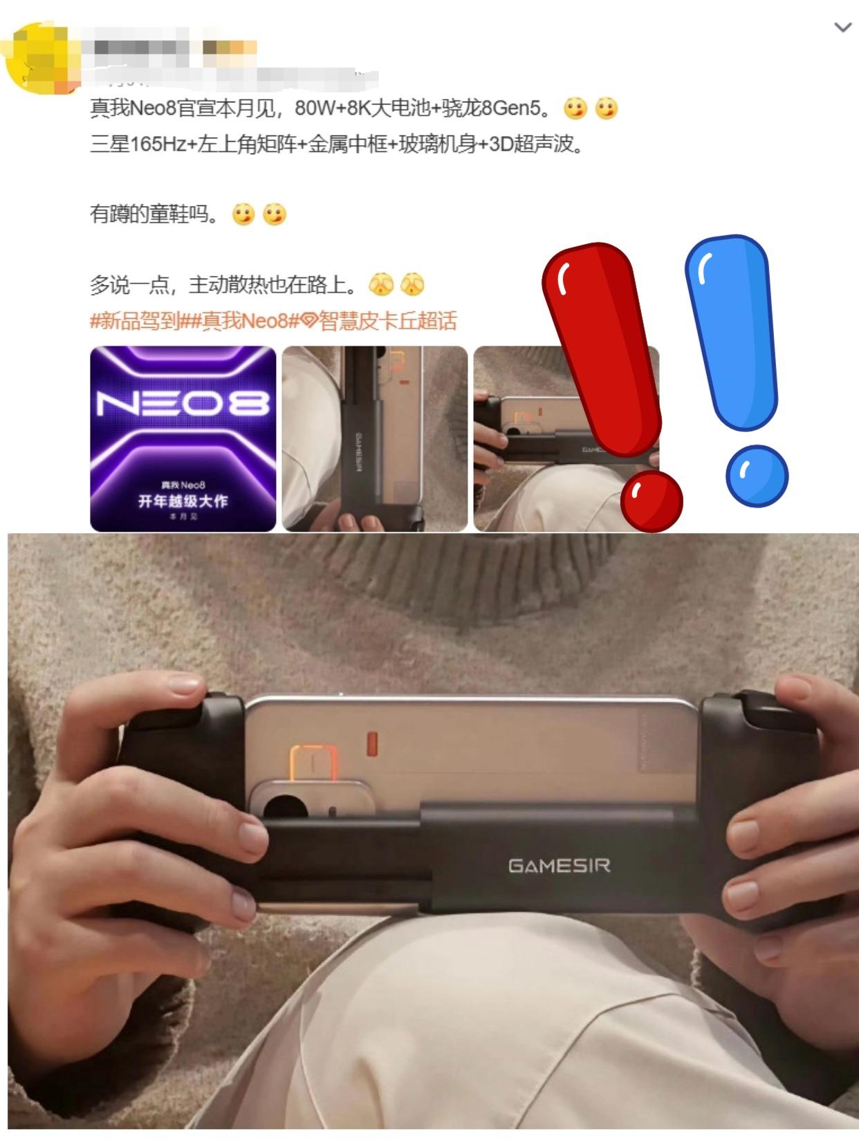 现在国产手机大多都用的是京东方、维信诺、天马这几家的屏幕,现在看到用马上要登场的真我Neo 8用三星屏幕的手机反倒成为稀奇了。大家觉得国产屏好还是三星屏好啊?? 其他配置上,真我Neo 8预计还将搭载骁龙8g5、8000mAh大电池+80W快充,采用金属中框+3D超声波指纹。上一代起售价是2199,现在内存涨价这么厉害,这代应该会小涨一波