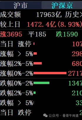 补涨型的是北证50、科创50、券商、新能源、医药和食品饮料这些方向,后面也会有轮动表现的机会,牛市行情下,从来不缺上涨的”理由“和”借口“。