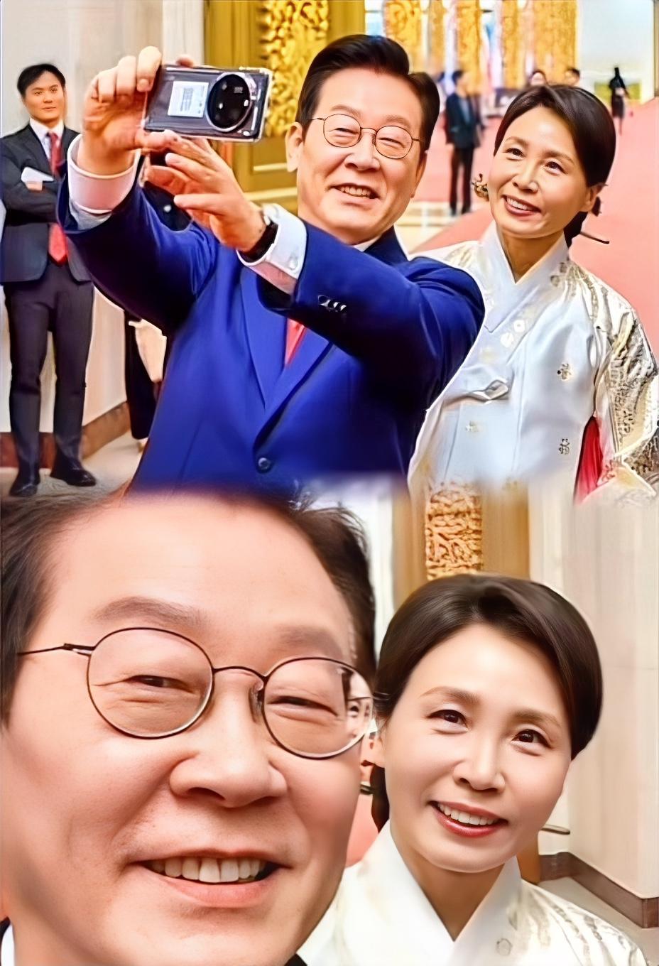1月5日,韩国总统李在明夫妇访华,人民大会堂举办了隆重欢迎仪式。这是2026年李在明首次出访,也是韩国总统时隔六年后再次来华。 会晤结束后,李在明开心地拿出小米手机自拍,夫人金惠景十分配合。金惠景在访华期间造型吸睛,第二天穿的红白色传统韩服格外隆重,发型戴了发簪,复古又有女人味。 她还会根据场合选不同韩服,第一天侨胞招待会上也是传统韩服亮相。这场访问里,从李在明的自拍到夫人的着装,都展现出对此次行程的重视。