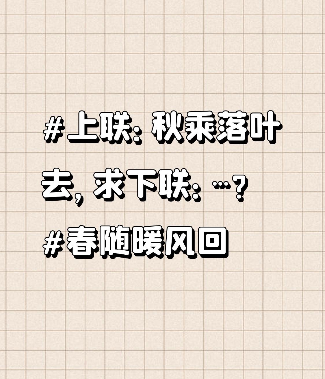 上联:秋乘落叶去,求下联:…?春随暖风回㇏