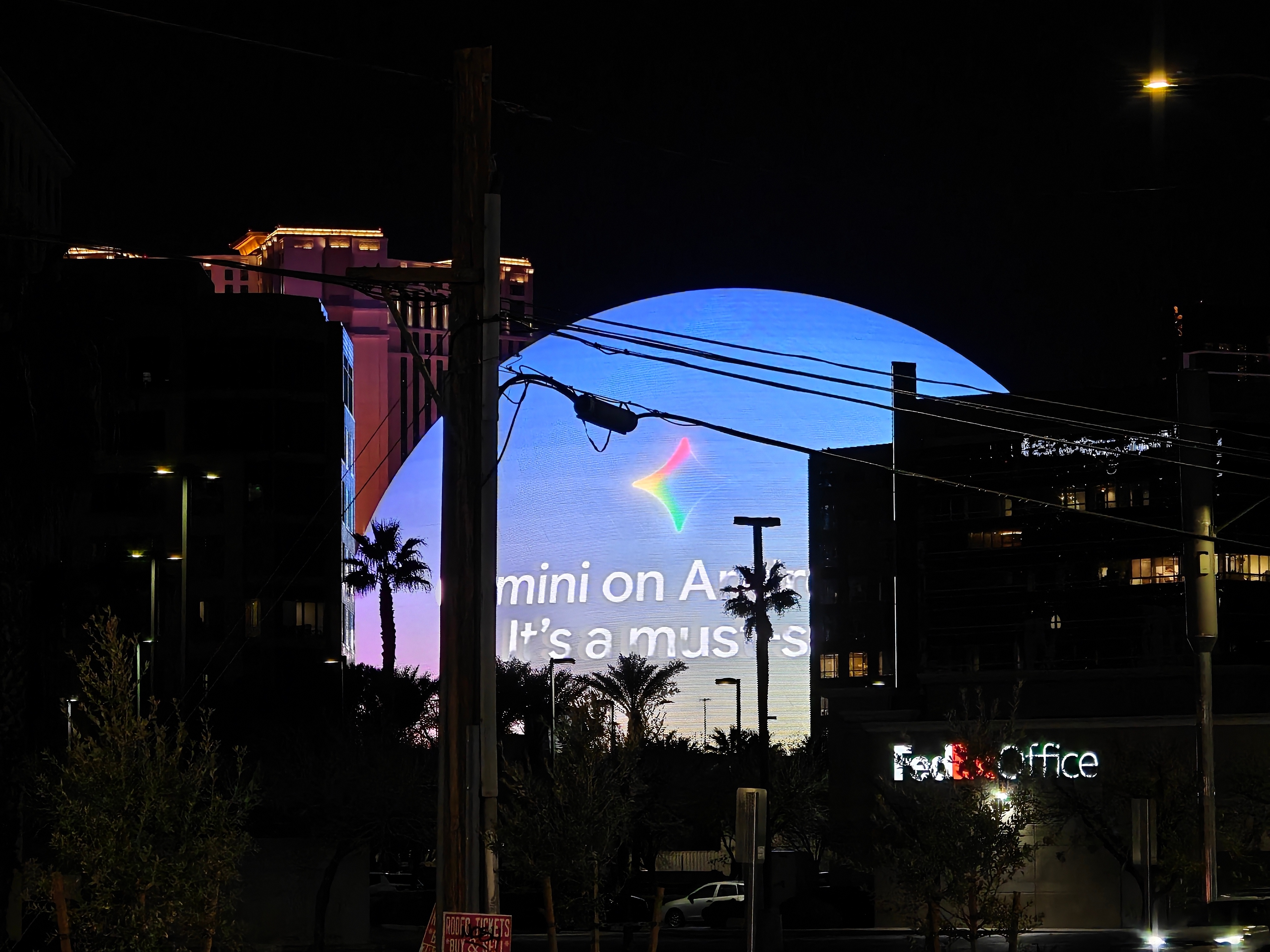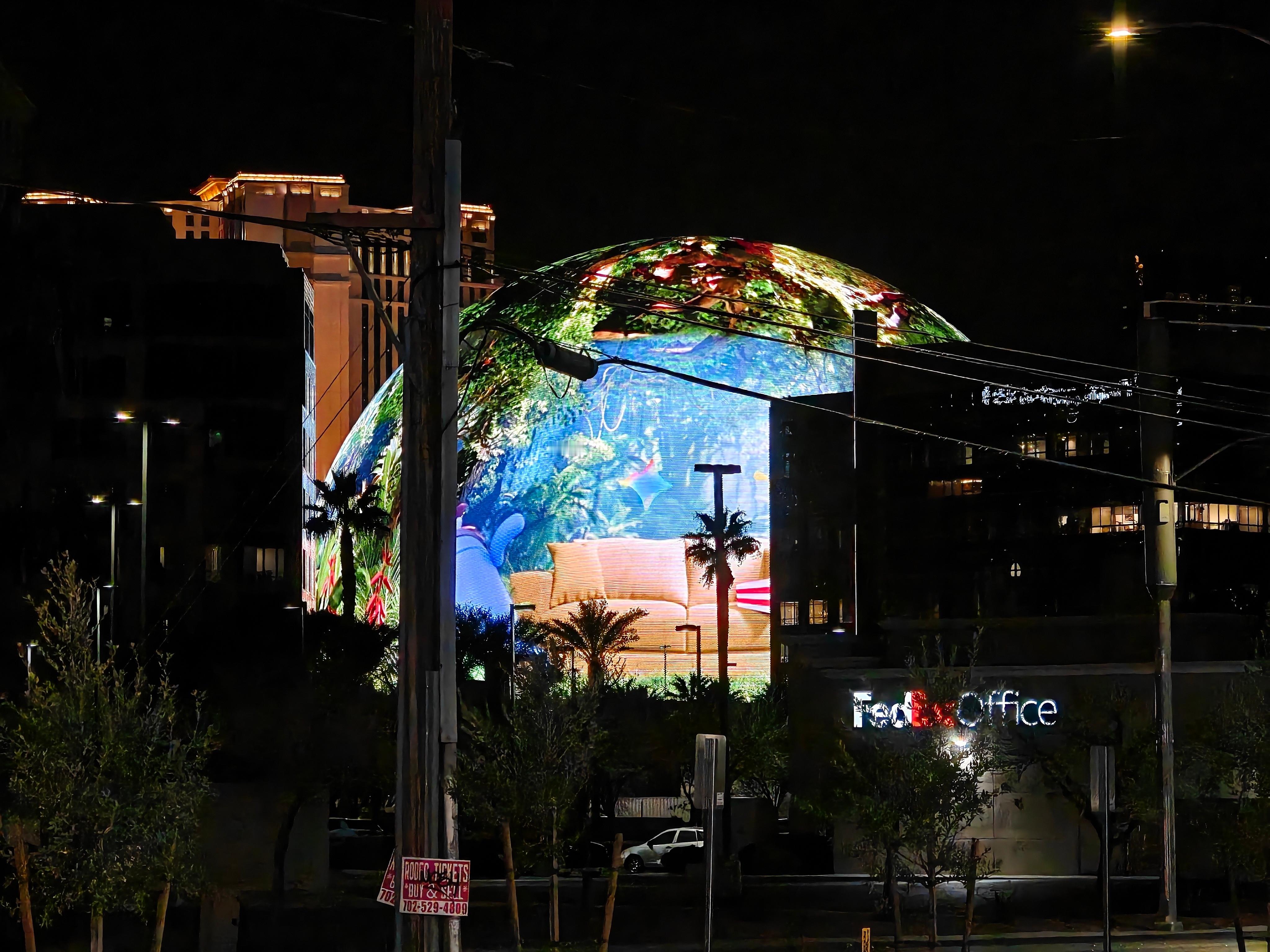 Google 在拉斯维加斯的网红球 Sphere 上投了 Gemini 的广告。看了一会儿,感觉好像有点抽象,貌似在展示 Veo 3 的视频生成能力?很多画面只有 Gemini 的✦标能辨别出来这是 Google 的 AI…广告效果要打点折扣。