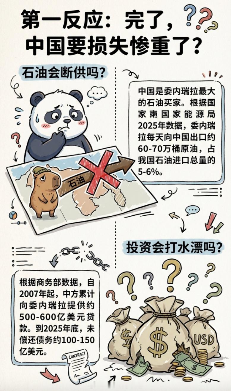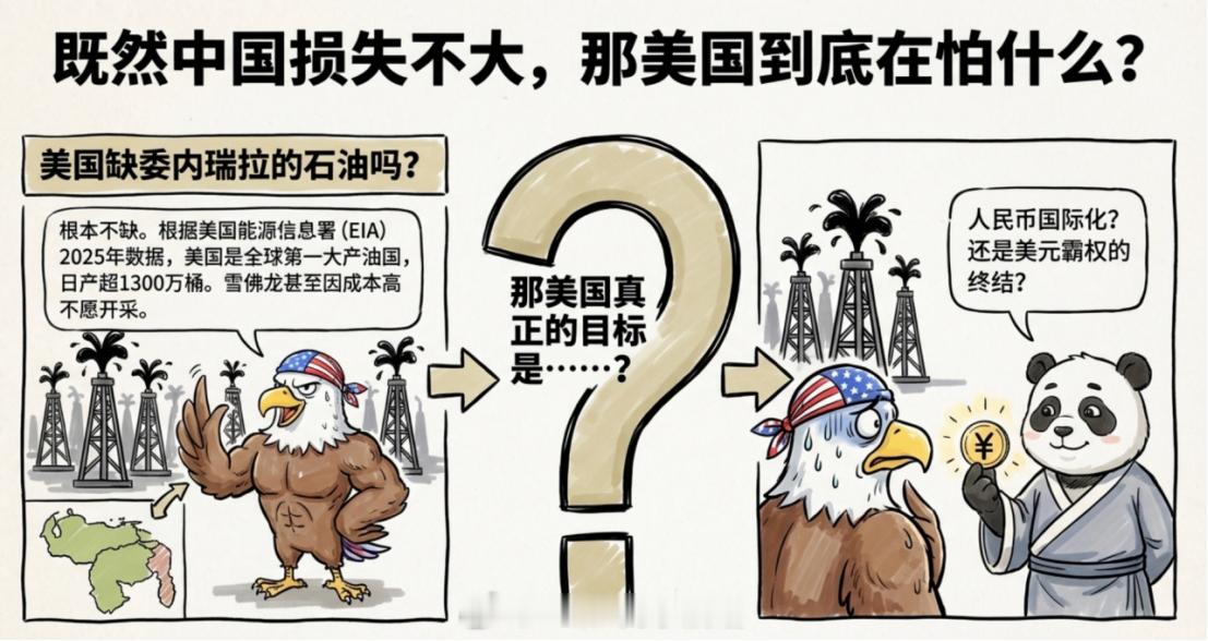 美国速通委内瑞拉动手了美国速通委内瑞拉,很多人看到新闻的第一反应是:完了,中国要损失惨重了。但恰恰相反,美国反而给自己挖了一个大坑。而且美国打委内瑞拉,表面上是秀肌肉,实际上是一场关于全球货币的较量。点赞收藏,今天我就把这背后的逻辑给你讲透。很多人担心中国会损失惨重,我们先来算算账。中国确实是委内瑞拉最大的石油买家。根据国家能源局2025年数据,委内瑞拉每天向中国出口约60-70万桶原油,占我国石油进口总量的5-6%。听起来不少,但这个缺口好补吗?太好补了。就像你常去的那家便利店关门了,但街上还有十几家超市,换一家买不就是了。中国每天进口原油超过1100万桶,是全球最大的客户之一,还怕买不到石油?根据海关总署2025年数据,中国从俄罗斯、沙特、伊拉克等十几个国家进口石油。委内瑞拉这条供应链如果中断,从俄罗斯多买点,从中东多买点,问题不就解决了吗。投资损失呢?根据商务部数据,自2007年起,中方累计向委内瑞拉提供约500-600亿美元贷款,到2025年底委内瑞拉还没还得债务大约是100-150亿美元。这笔钱确实不少,但放在中国3万亿美元外汇储备里看,占比不到0.5%。所以从纯经济账看,中国的损失是有限的。那问题来了:既然中国损失不大,美国为什么还要打?要知道,美国根本就不缺委内瑞拉的石油。根据美国能源信息署(EIA)2025年数据,美国是全球第一大石油生产国和出口国,日产量超过1300万桶,是全球唯一能达到这个数的国家。而且美国石油巨头雪佛龙早就有委内瑞拉的开采权,但一直不愿意投资,因为开采成本太高,根本不赚钱。那美国到底在怕什么?**怕的是委内瑞拉正在做的一件事:用人民币结算石油。**这才是核心。根据中国人民银行2025年数据,中国从委内瑞拉进口的石油,约60%使用人民币结算。这个比例在全球石油贸易中是最高的。为什么这件事让美国这么紧张?因为它动了美元霸权的根基。就像一栋大楼,地基开始松动了。二战以后,美元之所以能成为全球霸权货币,有两个基石:一是军事实力,二是石油美元体系。全球石油贸易都用美元结算,你要买石油就必须先持有美元,这让美元有了全球需求。但现在,这个体系正在松动。2023年,沙特开始接受人民币结算部分石油出口。2024年,俄罗斯对华石油出口100%使用人民币结算。2025年,伊拉克、阿联酋也开始试点人民币结算。根据中国人民银行2025年的数据,人民币在全球支付中的占比从2022年的2.1%增长到2025年的4.7%,翻了一倍多。在大宗商品贸易领域,人民币占比更是在20%左右。石油,这个美元霸权的基石——正在被人民币一点点侵蚀。而委内瑞拉,就是这个侵蚀过程中最激进的那一个。而且美国正在进行的全球战略收缩。从阿富汗撤军、减少在中东的存在感,都是战略收缩的表现。但战略收缩有个前提:你的后院不能起火。南美洲是美国的传统势力范围,如果连后院都保不住,谈何维持全球影响力?委内瑞拉大规模使用人民币,等于是在美国后院插上了人民币的旗帜。这是美国绝对不能容忍的。这就是美国出手的逻辑。可问题是,美国这一招能达到目的吗?我的判断是:短期有效,长期适得其反。为什么?因为美国陷入了三个无解的矛盾:**矛盾一:战略收缩vs维持霸权**美国想战略收缩,把资源集中到重点地区。但现在又要在委内瑞拉投入大量资源维持控制。这就像你本来想减肥,专心健身,结果每天晚上还忍不住吃夜宵。两件事互相矛盾,最后哪件都做不好。历史经验告诉我们,美国在阿富汗待了20年,花了2万亿美元。美国想维持对委内瑞拉的控制,那这个钱,也不会少。而且你对委内瑞拉出手了,那印太地区怎么办?岛链还要不要了?乌克兰那边还支不支持了?**矛盾二:战争手段vs国际信用**美元霸权的基础不仅是军事实力,更重要的是国际信用。二战后,美国建立了以联合国为核心的国际秩序,核心原则是尊重主权、反对侵略。正是因为有了这套规则,美元才能成为全球信任的货币。但现在,美国直接派兵进入一个主权国家,抓走人家的总统。那其他国家会想:既然美国可以随时打破规则,我会不会某天也被抓走?而且你之前冻结了俄罗斯的美元资产,那我的美元资产会不会哪天也被冻结?所以越来越多的国家会寻求美元替代方案——比如人民币。也就是说,美国为了阻止人民币国际化采取的行动,反而加速了各国对美元的不信任。就像一个商人,为了维护自己的生意,开始用暴力手段对付竞争对手。短期内可能有效,但长期来看,谁还敢跟这样的人做生意?**矛盾三:短期震慑vs长期示范效应**美国打委内瑞拉,短期内确实会让一些国家观望,不敢轻易使用人民币结算。但长期呢?其他国家会看到:美国已经没有其他办法了,只能用武力。而且更重要的是,其他国家会意识到:人民币国际化已经威胁到美国了,否则美国不会这么着急动手。这反而证明了人民币国际化的方向是正确的方向,会吸引更多国家在美国控制之外的地区使用人民币。孙子兵法讲:上兵伐谋,其次伐交,其次伐兵,其下攻城。最高明的战略是用计谋取胜,其次是用外交手段,再其次是用军事威慑,最差的才是直接开战。战争,是最后也是最差的手段。但美国一上来就用了。这就像打牌,你一上来就把王炸打出去了,后面怎么办?没招了。所以对比一下中国的做法,美国差在哪儿?中国现在推动人民币国际化,用的是贸易、投资、基础设