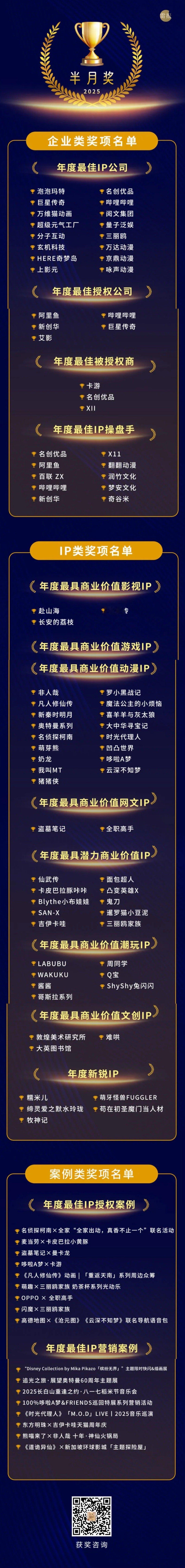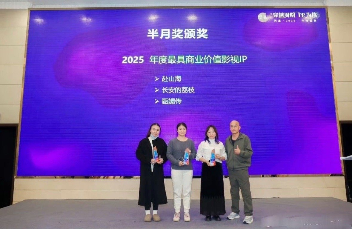成毅赴山海荣获问道2025年终盛典半月奖年度最具商业价值影视ip。一同获奖的有甄嬛传、长安的荔枝。包括优酷 爱奇艺 腾讯视频等上百家重量级公司相关负责人和资深从业者在现场见证。