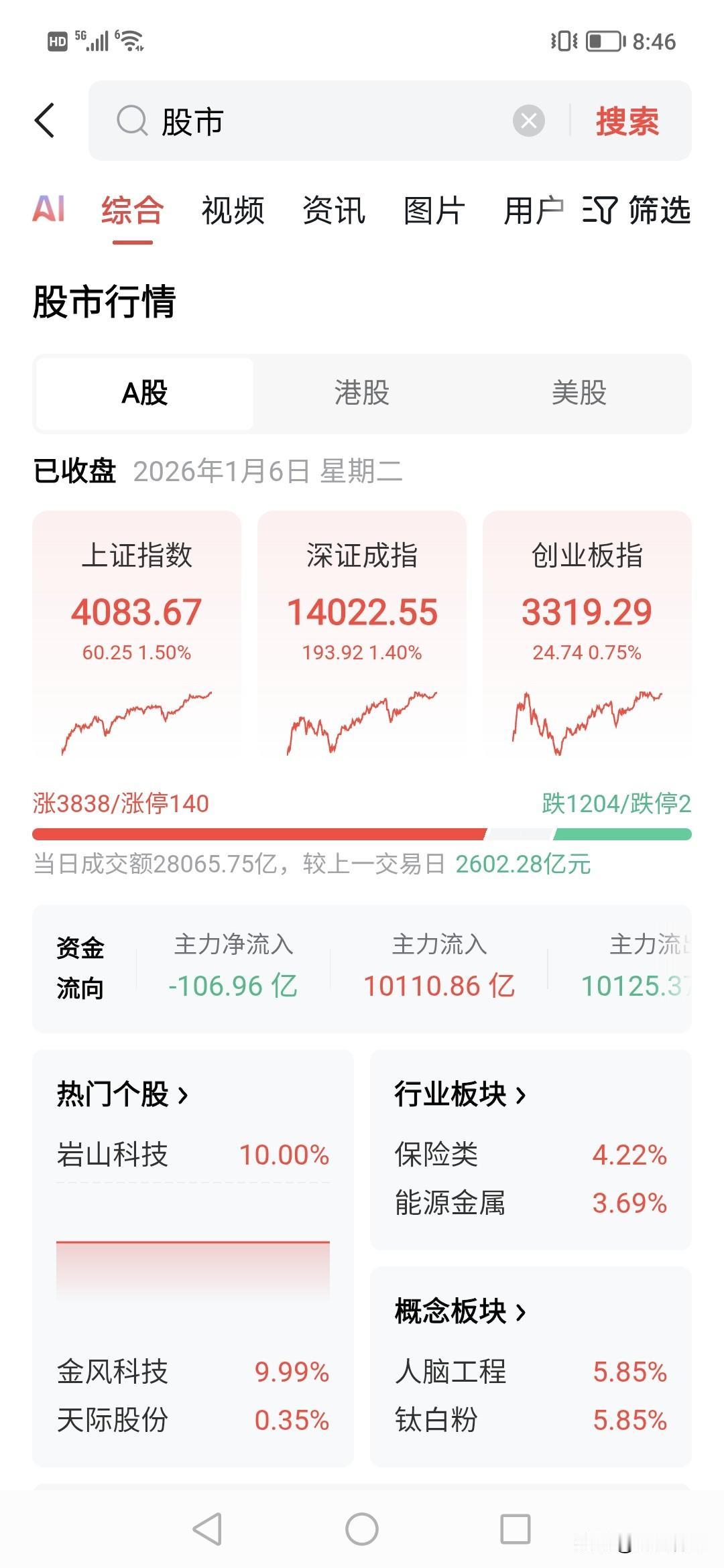 天啊,2.8万亿啊,应该是近一年这么大资金量了。。!股市开年就兴奋,主力买入一万亿,但流出100亿。 看来有1.8万亿是来自散户。! 没想到的是,债市两天吃土。。!另方面拼命说,你赶紧来买债,不然如何发新债?估计买债基的人,不知道怎么哭了。你说呢。!权益牛起了。股市资金流向 股市资金流入
