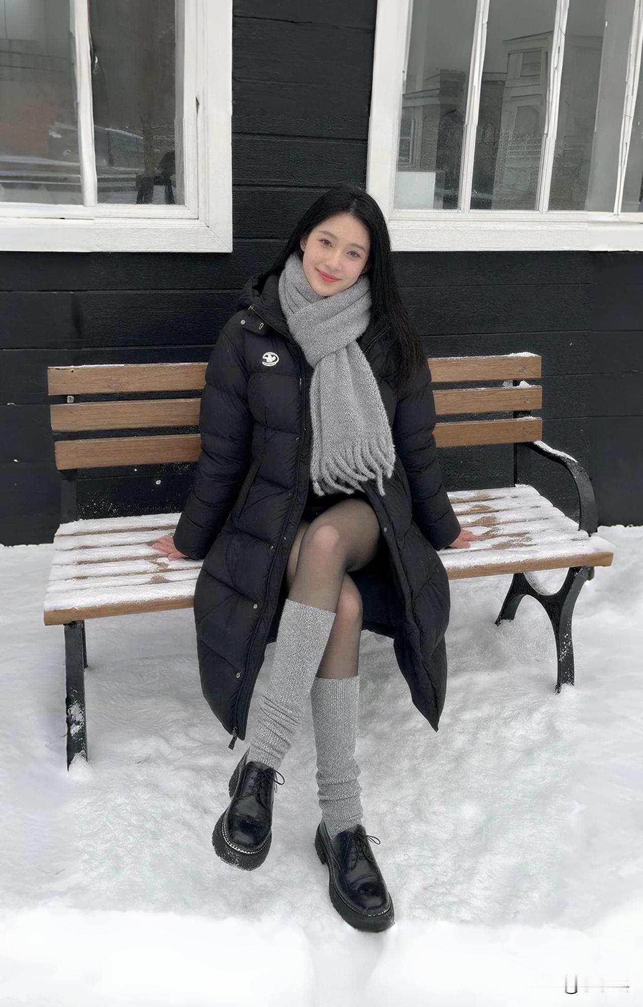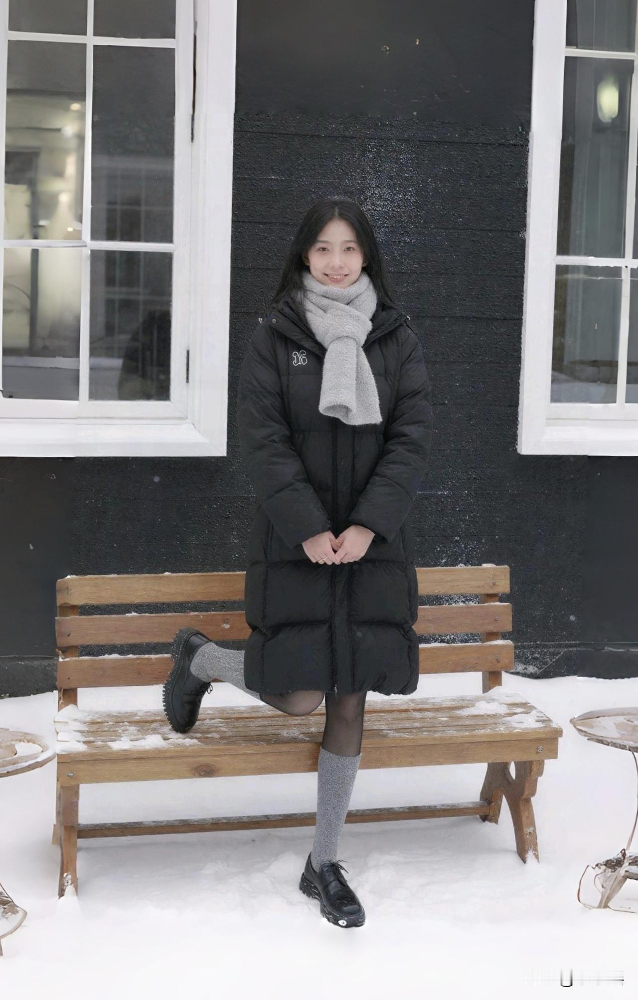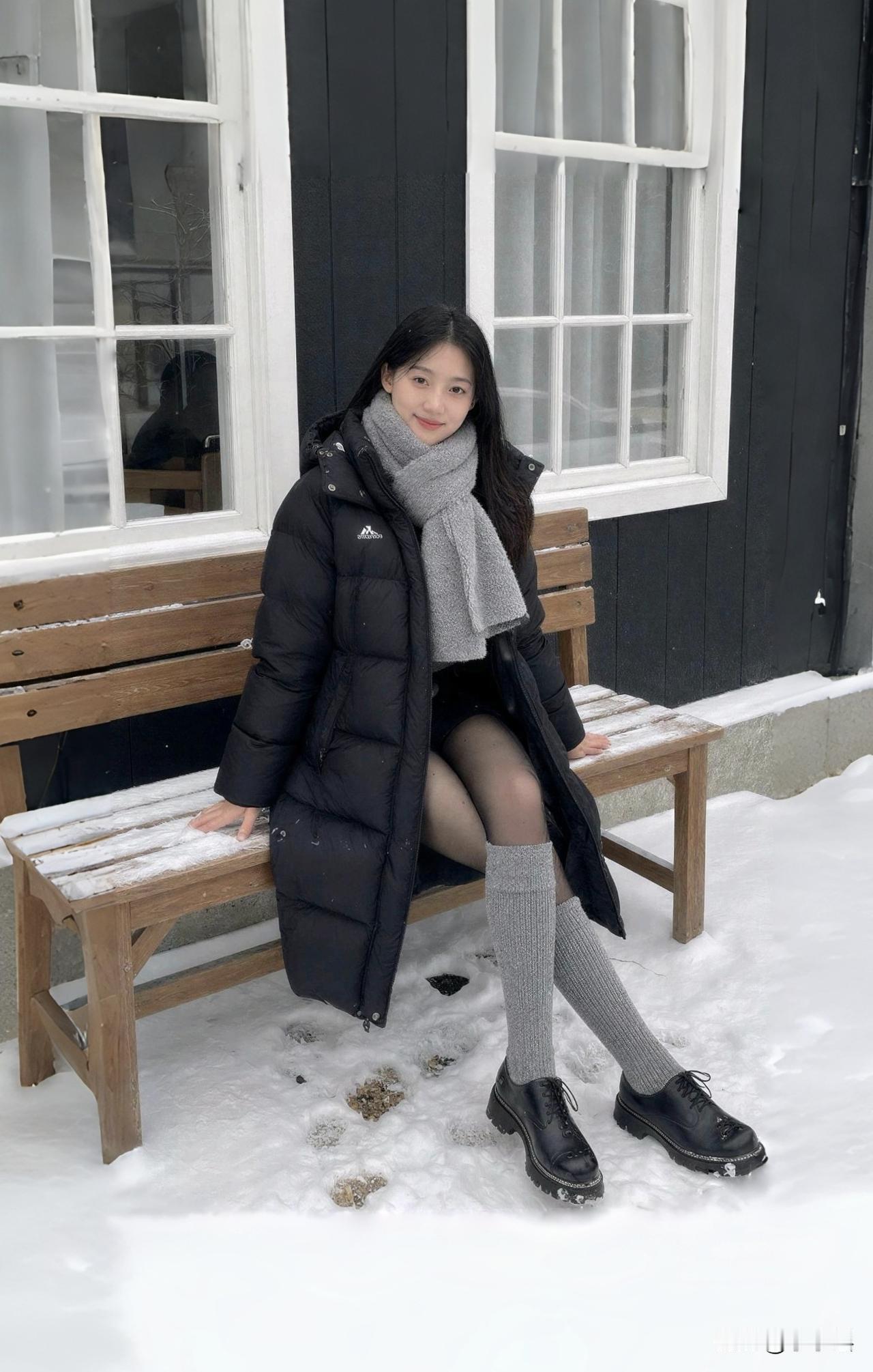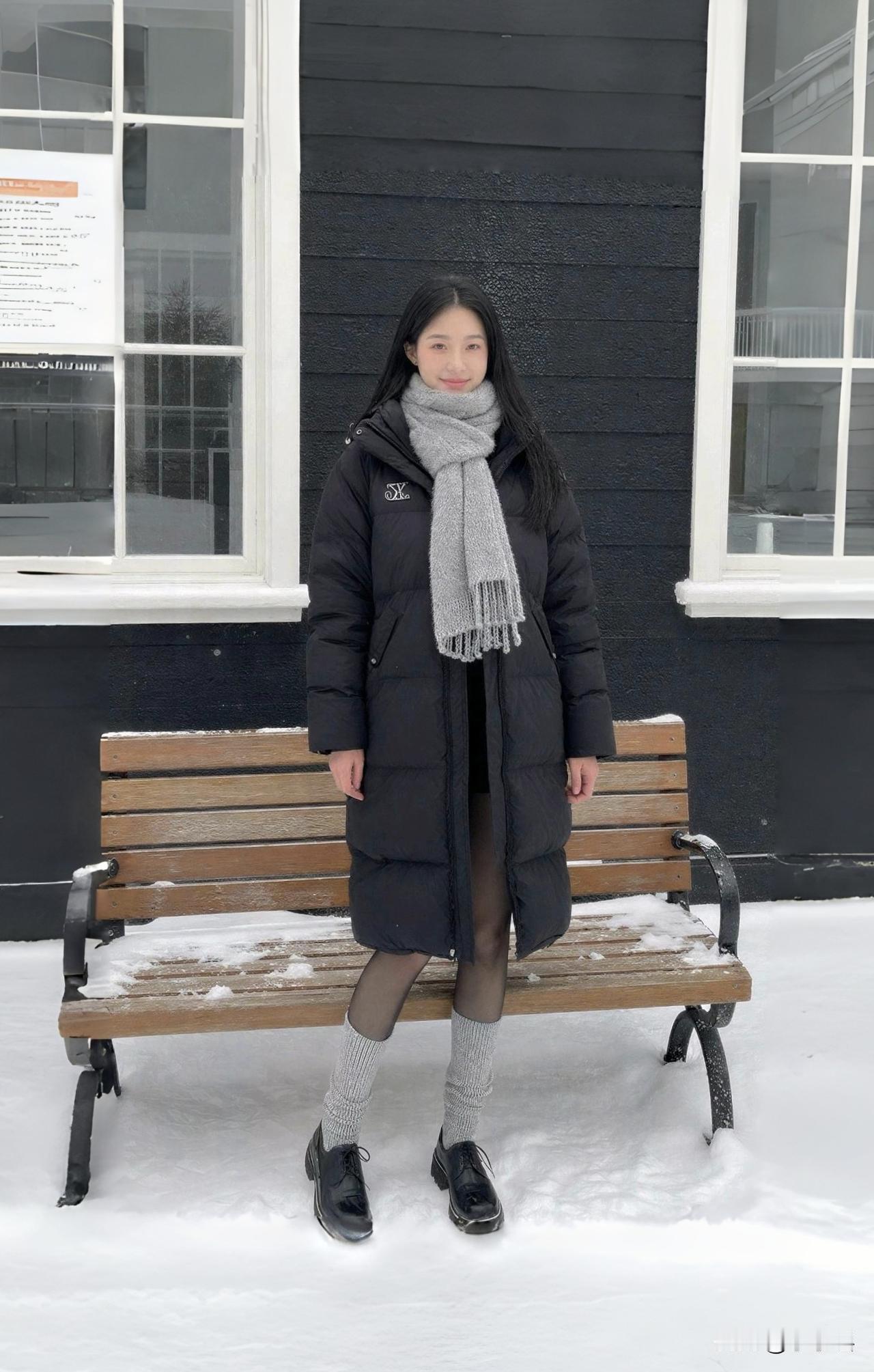 分享秋冬穿搭 雪天里的漂亮小姐姐 长款羽绒服配厚黑➕堆堆袜 简直就是绝美的一道风景
