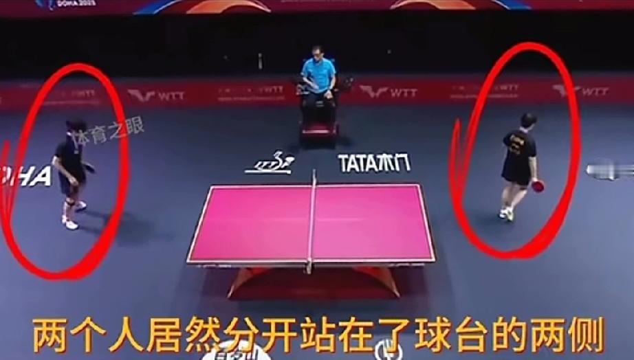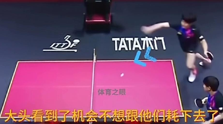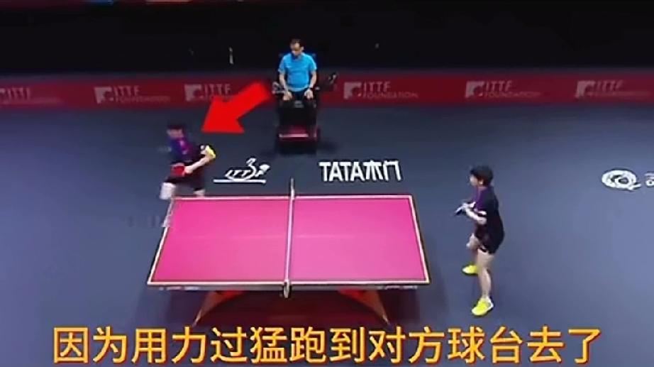 莎头混双俩人竟然站在球台的两侧! 原来是对日本混双,对方大藤沙月一个轻巧的挑球,大头当即上前手腕一转,来了个变线的小操作。 对方轻巧一搓,莎莎反应迅速走斜线,大藤沙月回球质量不太高,大头不想再折腾,耗下去,直接爆冲,结果用力过猛跑到对面球台去了。 咱就说,这俩孩子打球太卖力了!