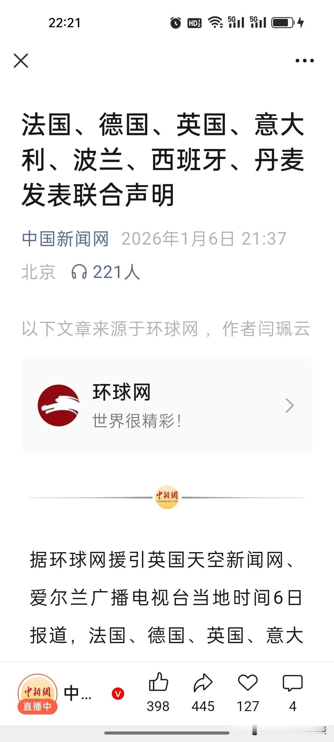 刚刚最新《环球网》消息,欧洲七国发联合声明了,这么做绝对是“双标”天花板!对美侵委沉默,对格陵兰岛触及核心利益却急喊"捍卫主权"? 美国突袭委内瑞拉、强掳总统马杜罗,法德英等七国的联合声明通篇只有"密切关注",对美方践踏国际法的行径一字不提,意大利更是赞同美国做法,法国总统以及德国的回应都模棱两可。 可转头面对特朗普的一句“绝对需要格陵兰岛”,欧盟七国坐不住了,今天火速联合发声,高调宣称"格陵兰岛属于其人民",死守"主权完整、边界不可侵犯"原则,生怕美国动了自己的北极利益蛋糕。 要知道格陵兰岛坐拥钼矿、石墨等25种欧盟亟需的关键矿产,双方已签战略协议推进开发,关乎欧盟绿色转型命脉,这般急吼吼表态不过是利益驱使,哪能因为美国想独占而低头呢? 同样是美国的霸权威胁,只因涉及自身利益就高举国际规则大旗,无关己事便装聋作哑。欧洲的"正义"从来都是量身定制,这样的双标嘴脸,正在彻底透支国际社会的信任! 不过,特朗普在豪夺格陵兰岛之前,也要掂量一番,欧盟不是委内瑞拉一个弱小国家,毕竟格陵兰岛是北约成员国领土,真的孤掷一注与全世界为敌,拿到了格陵兰岛的矿产又卖给谁呢?
