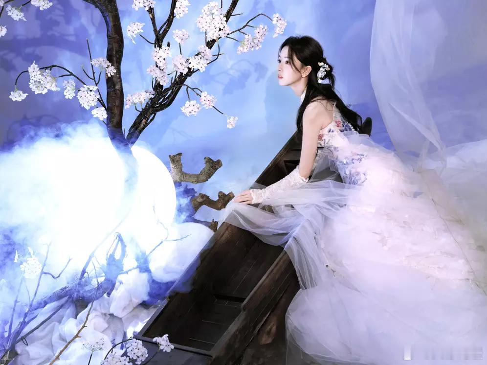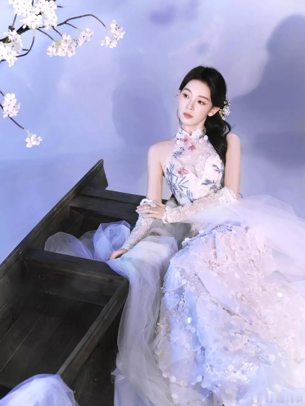 文亦娱乐陈瑶穿新中式旗袍婀娜多姿 花树下抚琴气质清雅温柔