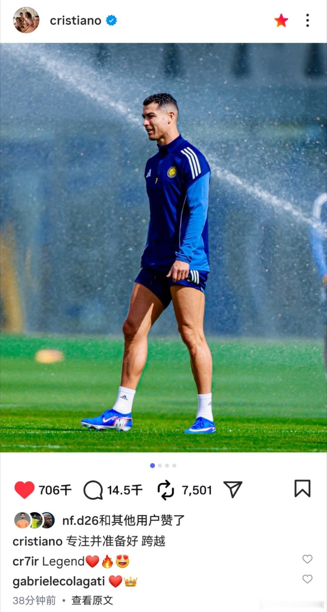 C罗 C 罗更新 ins:“专注并准备好跨越。”