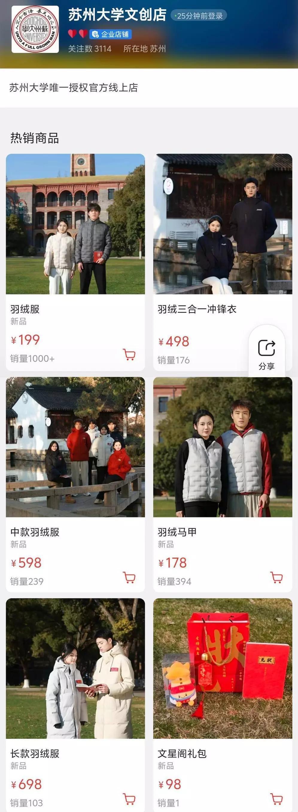 苏大羽绒服上线首日销售火爆,校长主推的199元款卖断货 谁懂啊!高校文创终于不搞“情怀刺客”了!苏州大学刚上线的专属羽绒服,首日线上线下狂卖2000多件,校长力推的199元短款直接卖空,连老师都组团扫货,一次囤五六件送亲友,官微推文24小时阅读量飙到65万,创了历史新高! 别以为这只是情怀溢价,苏大这次是把“实用”焊在了骨子里。199元的短款用的是超细防绒压条+无缝压胶工艺,不跑绒不钻绒,轻盈到能当内搭;长款充绒量超220克,还加了石墨烯保温层,防风防雨的三防面料,应对江南寒冬绰绰有余。从178元的羽绒马甲到698元的长款,全价位覆盖,对比市面上动辄上千的品牌款,性价比直接拉满。 更戳人的是藏在细节里的温度:胸前的校徽魔术贴可卸可贴,低调又有归属感;中性版型不挑身材,学生党通勤、教职工办公、校友怀旧全适配。有同学说“之前羡慕别的学校,现在终于能穿着母校的衣服骄傲出门”,毕业26年的校友特意下单,说要把青春记忆穿在身上。这哪是卖羽绒服,分明是给50多万苏大人送了件“行走的校园记忆”。 高校文创爆火的真相从来不是跟风,而是像苏大这样——把情怀做实在,把品质做过硬。不搞花里胡哨的设计,不标虚高的价格,只做普通人穿得起、用得上的好东西。 你被苏大这款“暖心又划算”的羽绒服圈粉了吗?如果你的母校出文创羽绒服,你最看重性价比还是情怀设计?来评论区聊聊!热点话题 199元羽绒服