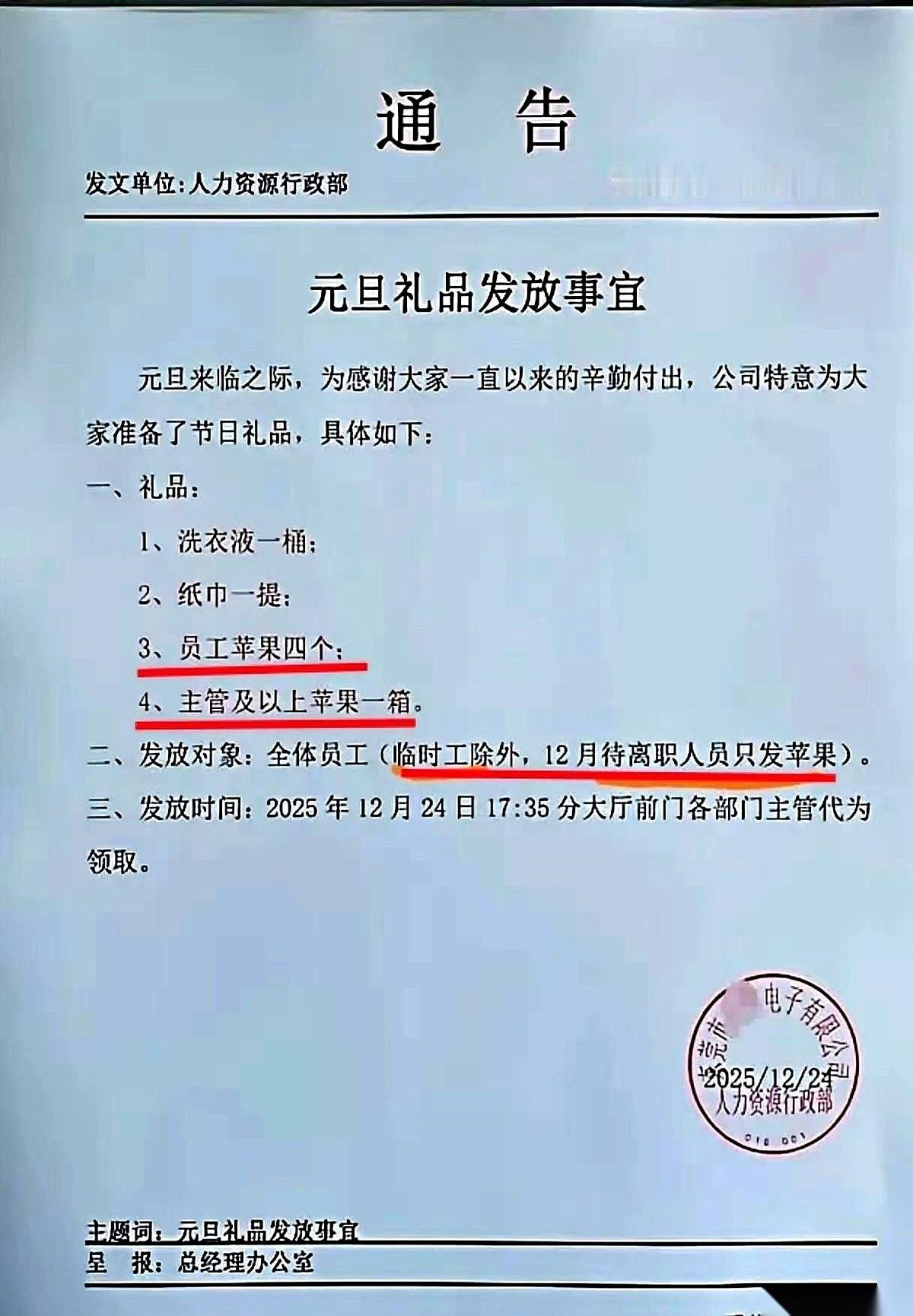 主管,一整箱苹果。 我们,四个苹果,一桶洗衣液。 我盯着那张红头纸看了半天,手上的油污都没顾上擦。 脑子里嗡嗡的。 最狠的,是下面那两行字。 下个月要走的,对不起,洗衣液扣掉,就剩四个孤零零的苹果。 至于临时工…… 哈,临时工不算人,排队的资格都没有。 那一刻,流水线上机器的声音都好像小了。 大家你看我,我看你,眼神里那味儿,太复杂了。 是愤怒?是委屈?更多的是一种……被当众扒光了的难堪。 说真的,谁在乎那几个苹果、那桶破洗衣液? 不够在外面吃顿好的。 但这个事儿,它恶心就恶心在,它不是发福利,它是在公开处刑。 它当着所有人的面,在你脑门上“啪”一下,重新盖个戳,给你明码标价: 你是主管,你值一箱。 你是员工,你就值四颗。 你要走了?那你过去流的汗,对不起,打折了。 你是临时的?那你连人都不是。 真的,你啥也不发,我顶多觉得你抠。 但你这么一搞,那桶洗衣液提在手里,沉甸甸的,比挨个大嘴巴子还火辣辣地疼。