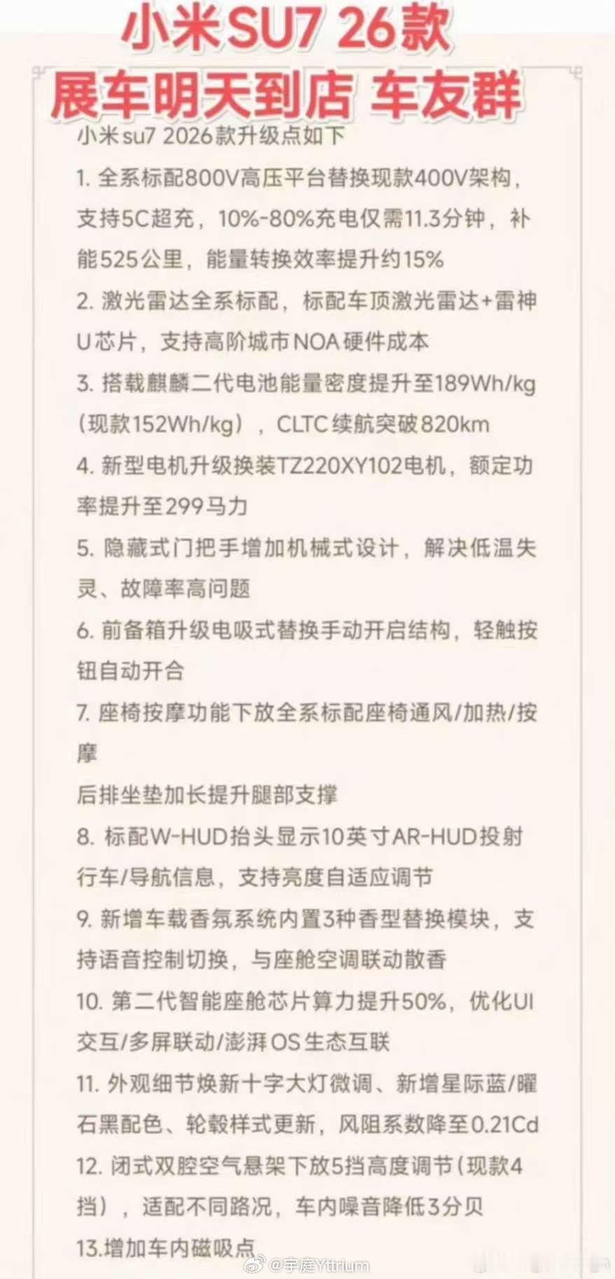 刚刚su7无声无息的在App里上了新版的链接。外观好像没有任何变化,只换了新颜色。网传的配置升级还是很大的。