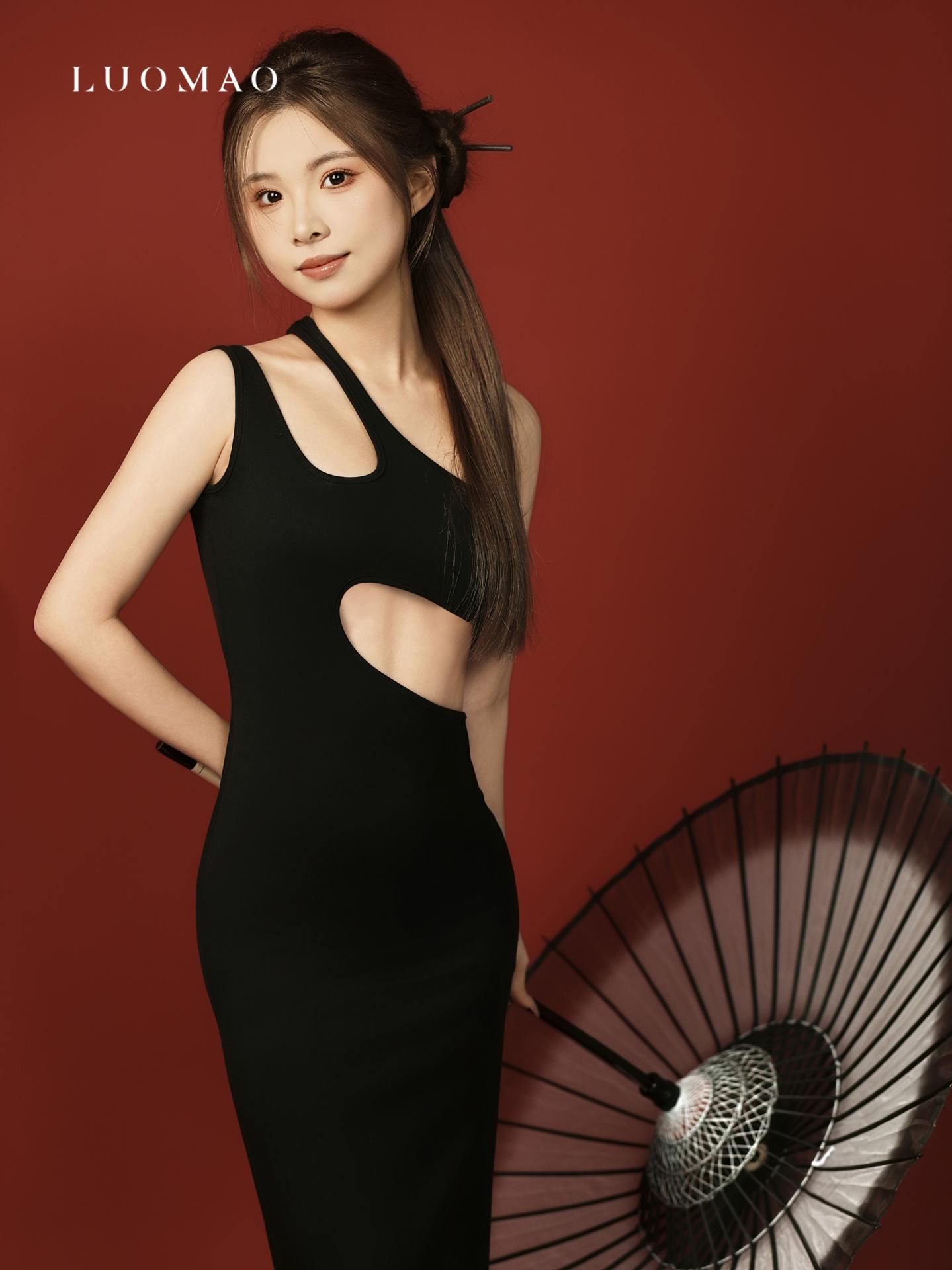红底黑裙新中式|清冷感少女写真直接封神✨。修身黑裙的小镂空刚好戳中氛围...