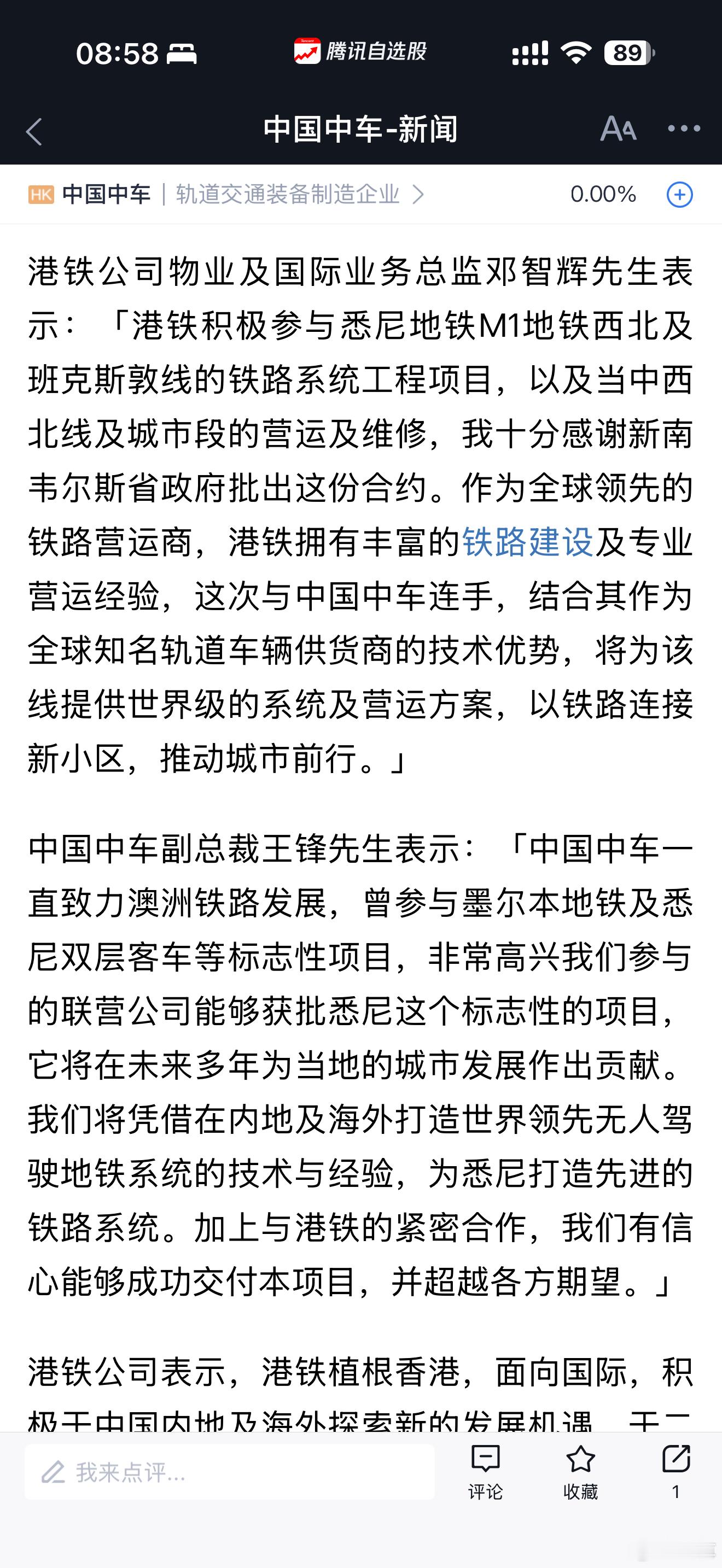 港铁和中国中车,将要为悉尼西部地区修建一条地铁,提供列车,并承担后续运营和维修等等。这是一个大买卖,为西方发达地区的世界级都市提供重要基础设施。这几乎是中国最擅长的产业。没有大规模成单,主要是政治因素。这几年我在很多地方看到,即使是发达国家,基建可由于建设比新兴国家早几十年甚至百年,所以这方面的更新需求很大,但政府很难拿出巨资和足够的耐心。这个时候,谁能又好又快又便宜,是极具竞争力的。相信悉尼也是综合评估过的。我又联想到前些天越南高铁大项目的新闻。先是选定了德国和韩国的联合方案,没有选更有经验和落地成果的中国或日本方案。越南显然考虑了很多政治和本土产业化的因素。但中标结果出了几天,越南首富(大地产大商业大电车包圆了)就变卦宣布退出项目。让人感觉是说好了陪标帮忙还价的一方,不下心中标了,内心很尴尬,干脆不演了。中国基建去到海外,实属大家双赢。
