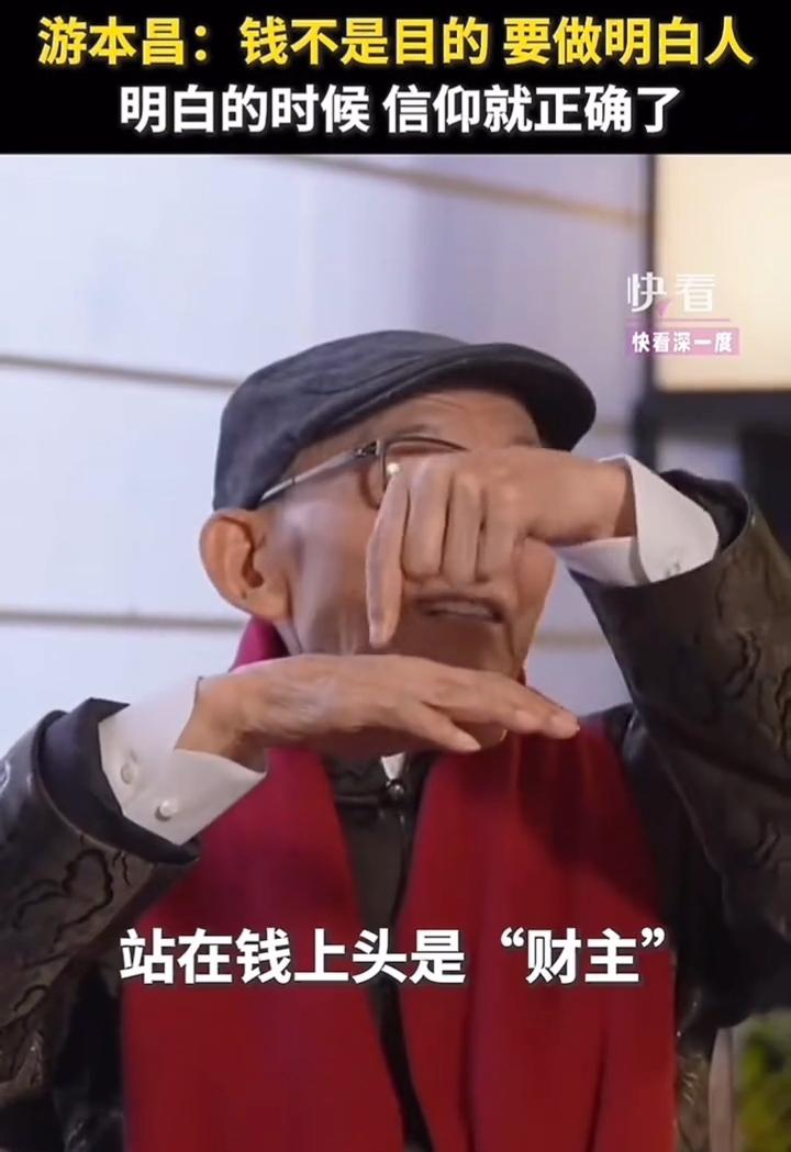:) 游本昌 :要做明白人,钱不是目的,要做明白人,明白的时候,信仰就正确了。钱,站在上头是财主,跪在底下是财奴,要做明白人。 如果你言出法随,为所欲为,吃尽穿绝,锦衣玉食,佳人倾心,亲朋称赞,万众敬仰。可惜你不是,为了达到这些目的,你需要钱,所以钱是手段。@小村: 不理解话你想想赵德汉就知道了,钱多得没处放,“我一分都不敢花呀”,有啥意义呢,还把良心给坏了,把前途给毁了。挣钱是为了让日子幸福,活得有尊严,比如能让孩子安心读书,让父母稳妥养老,让伴侣有所依靠等等,先把这些定义清楚了,即便挣钱的路上也不会那么煎熬,当这些实现的时候就能感受到幸福。可如果为了面子,为了和别人比钱多少,车子更豪一点,房子更大一点,吃穿更奢华一点,把自己给累到挣扎,那就很不幸了。 不缺钱的人视金钱如粪土,那叫信仰,缺钱的人视金钱如命,那叫生活,人不能没有钱,不能没生活,但可以没有信仰,大多数人活着赚钱只是为了活着,只是为了生活,都不明白信仰是什么,只知道上有老下有小努力赚钱努力的活着 对于财富自由的人来说,胡说八道都是对的。但对于三餐奔波劳碌的人,钱就是目的,就是底气,就是信仰,就是全家的希望。当你赚不到钱,亲情,爱情,友情都没有,连人都不是
