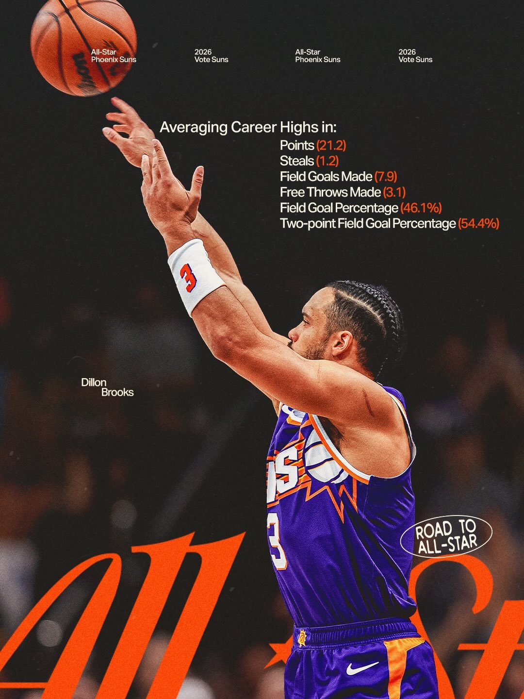 🔥 给狄龙投出你的全明星一票!🌟 场均数据刷新生涯新高得分 21.2|抢断 1.2|命中 7.9 球|罚球 3.1投篮命中率 46.1%|两分命中率 54.4%🌟 本赛季出战的每一场比赛都得分上双❗️🌟 他是西部仅有的 12 名之一:场均 20+ 得分|投篮命中率 45%+|外加 1.2 抢断的全能球员❗️数字不会说谎,态度就在场上 ☀️🏀🗳️ 一起把狄龙送进 2026 全明星!⬇️中文全明星投票链接:网页链接海外全明星投票链接:网页链接菲尼克斯太阳|旭日东升|2026nba全明星投票