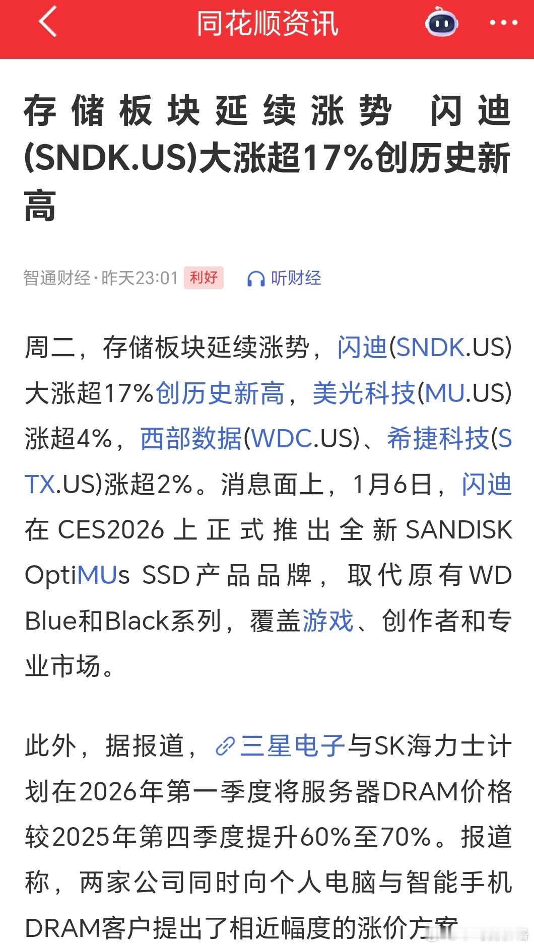闪迪暴涨!科技春晚?