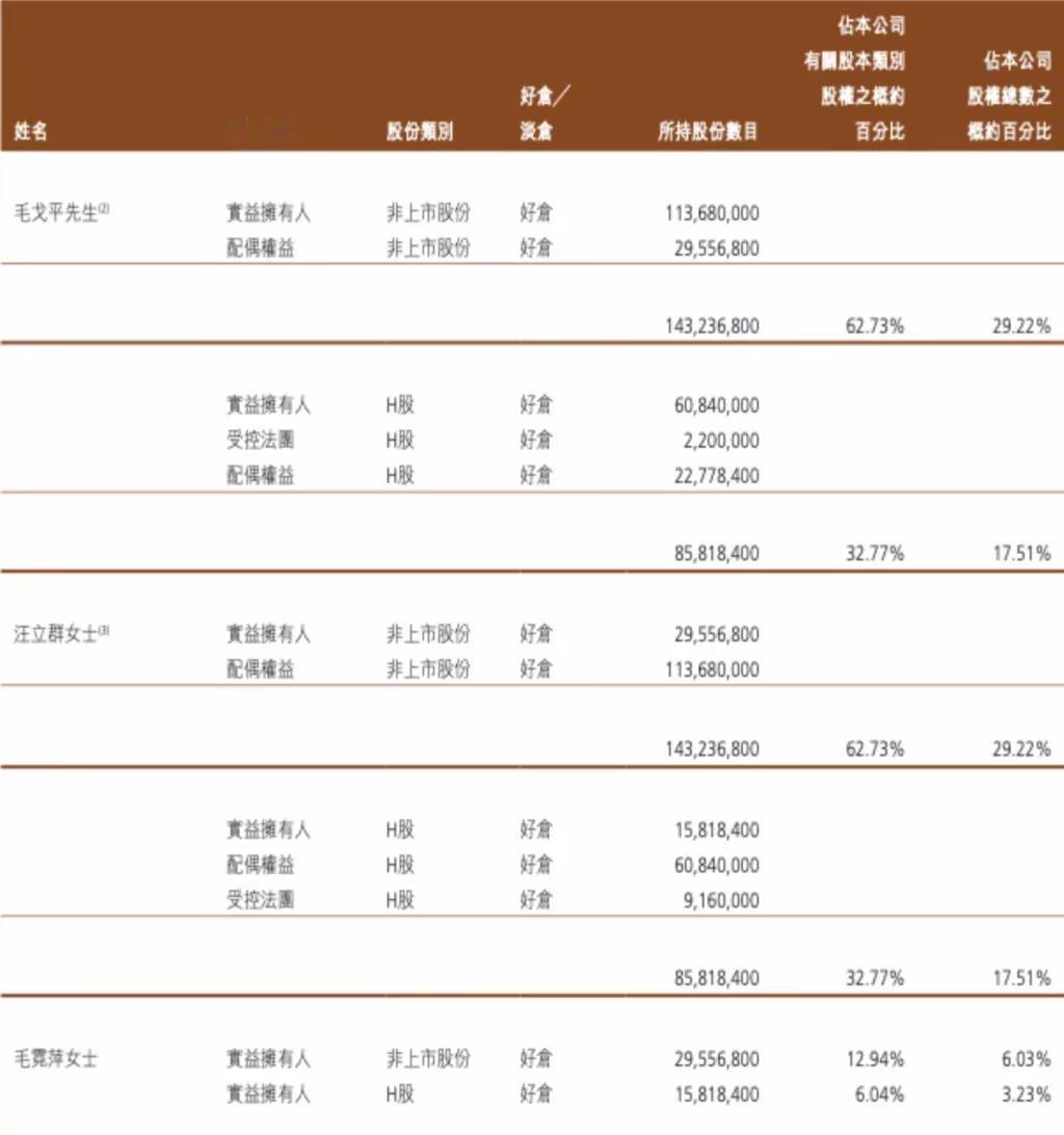 毛戈平创始人一家子, 干了一票大的。 毛戈平本人、老婆、两个姐姐、小舅子,加上总