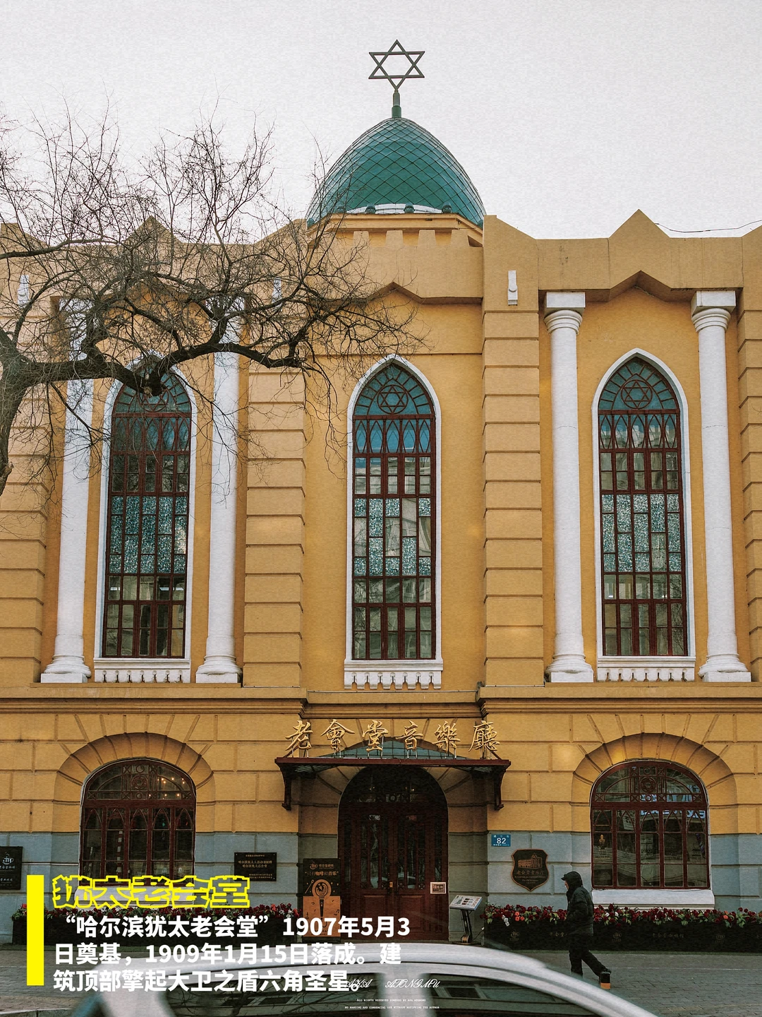 ✅位于道里区经纬街162号,是犹太教哈西德教派的会堂。这座会堂由著名的犹太建筑设计师约瑟夫•尤里耶维奇•列维金设计,于1918年9月21日开工,1921年9月25日落成