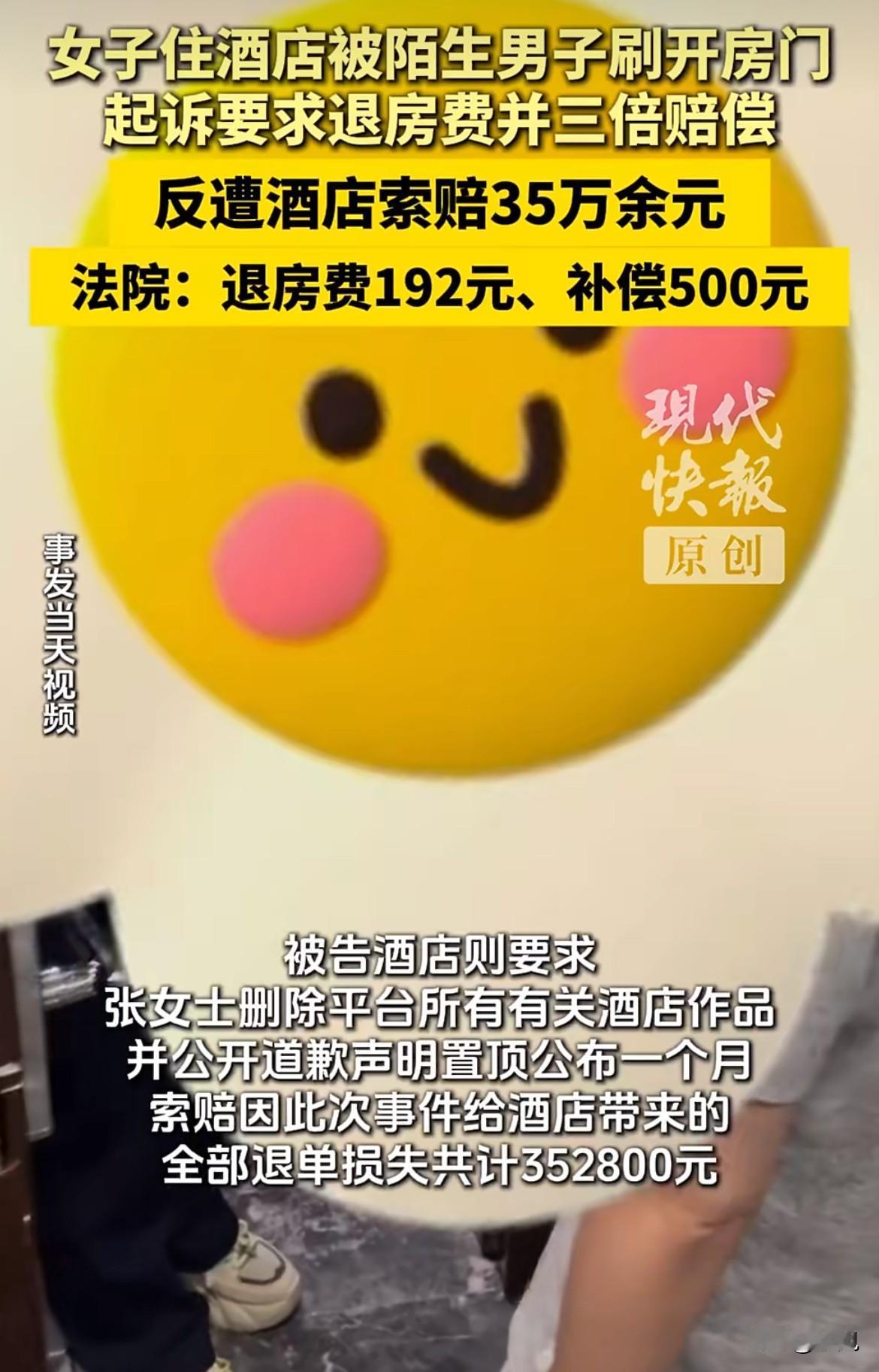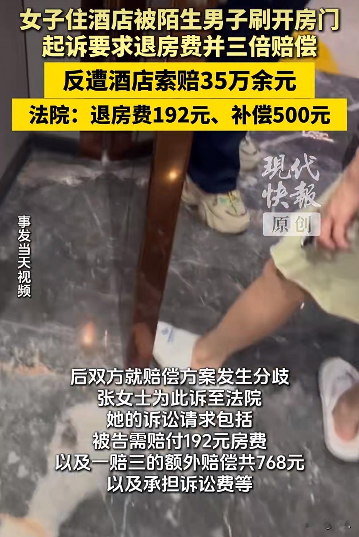 倒反天罡!住客房门被陌生人刷开维权,酒店反诉索赔35万。 2025年6月12日晚上9点36分,内蒙古赤峰某酒店的613房间内,王女士和同伴听到了这辈子最惊悚的声音。酒店房门被人从外面刷开了。 透过门缝,她们看到外面站着两个陌生男人,其中一个甚至光着膀子。万幸,门上挂了安全链,门没能完全推开。外面的人发现不对,转身往电梯口走了。房间里的人吓得魂飞魄散,立刻死死关上门,从猫眼死死盯着外面。 惊魂未定的王女士马上给前台打电话。你猜酒店第一反应是什么?他们派人上来,试了试门锁,然后竟然说:“是你自己没关好门吧?” 在王女士坚持下,值班经理才给了另一个说法:开门的是616房的客人。至于为什么616的卡能刷开613的门,经理的解释是——酒店系统当天升级,出了错。解决方案是:换一间房,明天退房时给你退房费。 事情到这儿,如果酒店诚恳道歉、积极处理,或许就过去了。可后面的发展,才真正让人开了眼。 第二天退房,经理加了王女士微信,但退费的事一拖再拖。王女士觉得酒店态度散漫,对这么大的安全漏洞毫不重视,就要求按消费者权益保护法“退一赔三”,总共768元。酒店方面呢?一位工作人员两次私下转给她200元,说“基层员工不容易”,都被王女士退回了。她要的不是私人同情,而是一个正式的交代。 沟通失败,王女士把经历发到了网上。这下,酒店的反应不是解决问题,而是“解决提出问题的人”。 他们竟然在网上发了一份声明,用词极其刺耳:说王女士“狮子大开口要2000元赔偿”,说她有“既要还要又要的恶习”,甚至号召“坚决不能让恶人得逞”。这简直是把一个受害的顾客,塑造成了一个敲诈勒索的“恶人”。 事已至此,王女士一纸诉状,把酒店告上了赤峰市红山区人民法院。她的诉求很简单:公开道歉,退还192元房费,并依法“退一赔三”。 而酒店的反击,惊呆了所有人。他们不但拒绝一切诉求,还反过来提出了天价反诉:要求王女士删帖、公开道歉一个月,并赔偿酒店“因这次事件带来的全部退单损失”——共计三十五万二千八百元。从768元到35万,这场维权之争,彻底变了味。 法庭上,酒店还坚持说,是616客人疏忽和王女士自己没锁好门共同导致的,系统没问题。但法院查明的事实,打了酒店的脸:当天,酒店前台工作人员根本没有按规定将旅客信息及时上传到公安系统,因此还被公安局罚了500元。 2025年12月29日,法院判决下来了。法院认为酒店确实存在服务瑕疵,但不够成欺诈,不支持“退一赔三”。最终判决是:酒店退还王女士房费192元,额外补偿500元,并承担1000元律师费,合计1692元。对于王女士要求公开道歉的诉求,法院未予支持。 一场风波,似乎以一千多元的赔偿画上句号。但王女士心里很失落,她最想要的道歉,始终没有等到。 更让人无语的是,直到2026年1月7日,判决生效好几天了,王女士说她还没收到酒店一分钱赔偿。打电话去问,酒店方面只有一句“不方便透露”。 回过头看这事,让人后背发凉。一个酒店,连最基本的安全门锁都能串号,出事后先怪顾客,网上泼脏水,法庭上反咬一口索赔35万,判决了还拖着不给钱。这一连串操作,每一环都在挑战普通人对商家的信任底线。 王女士的遭遇,或许我们每个人都可能遇到。她坚持要的,从来不是那几百几千块钱,就是一个理,一个安全入住的基本保障,一个犯错后真诚道歉的态度。可这个理,要得真难。 信息来源:现代快报,如有侵权必删