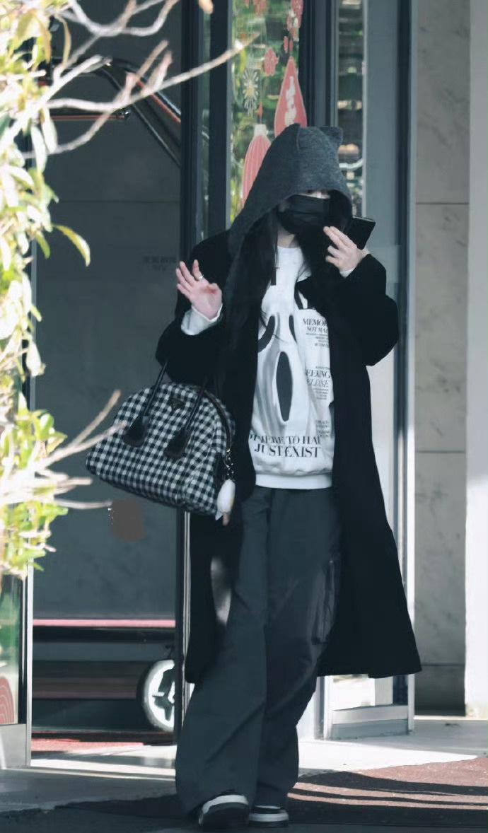 今天杨幂亮相上海机场,她这回走运动风路线,看起来年轻又时尚,气质超好。 杨幂里面搭配字母风T恤,下身穿灰色工装裤,尽显潇洒迷人的魅力。 她外面穿了一件黑色的风衣,看上去有种风度翩翩的感觉,还非常的有气势。 杨幂脚踩拼色风格的板鞋,确实是太潮了。 她手上挎着格纹包包,走路带风,像个很时尚的国际大牌明星,确实是太漂亮了。 杨幂留着超美的披肩长发,还戴着黑色的口罩,彰显出了满满的神秘感,真的好迷人。