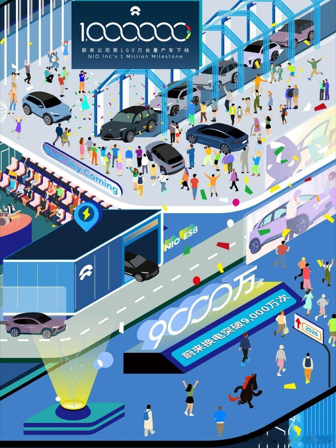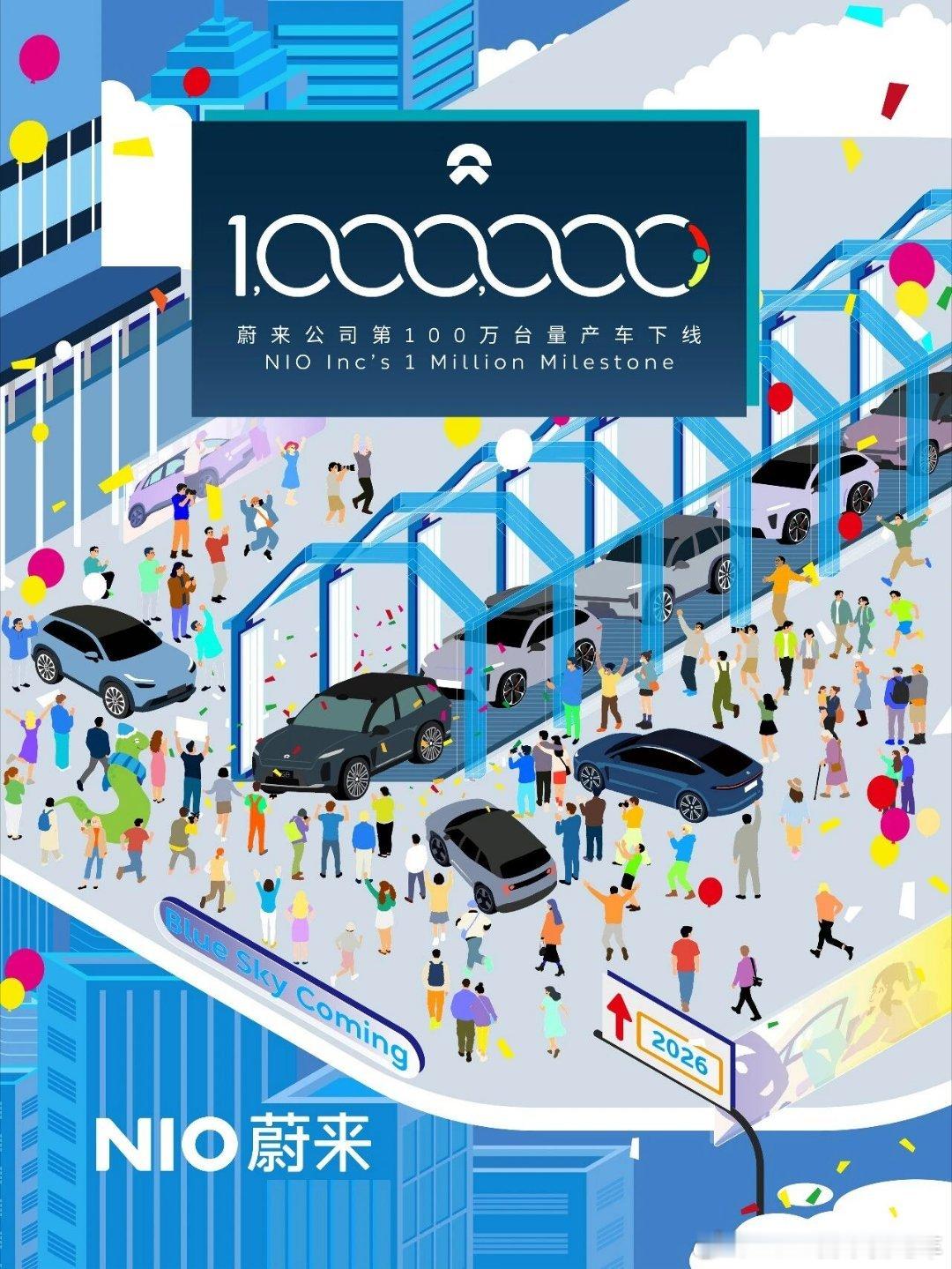 蔚来迈进百万俱乐部!今天蔚来有很多重磅消息,第一个就是完成了100万辆车的量产