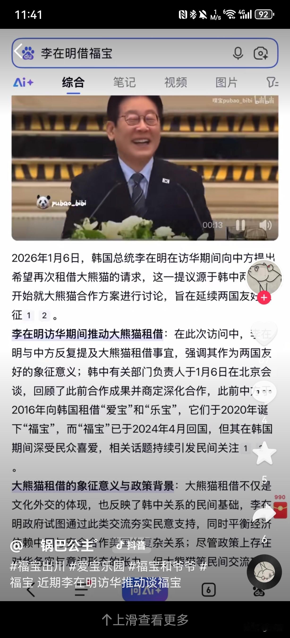李在明提出将一对熊猫租借至光州牛峙动物园,以此作为恢复两国国民情绪的象征性交流举措。 针对记者追问福宝回归韩国的可行性,青瓦台答辩人明确回应,该提议并未特指福宝。据悉,福宝已于2024年4月按协议返回中国,目前定居于中国大熊猫保护研究中心卧龙神树坪基地。 韩国爱宝乐园目前仍有4只大熊猫生活,分别是爱宝、乐宝以及它们的双胞胎宝宝睿宝与辉宝。