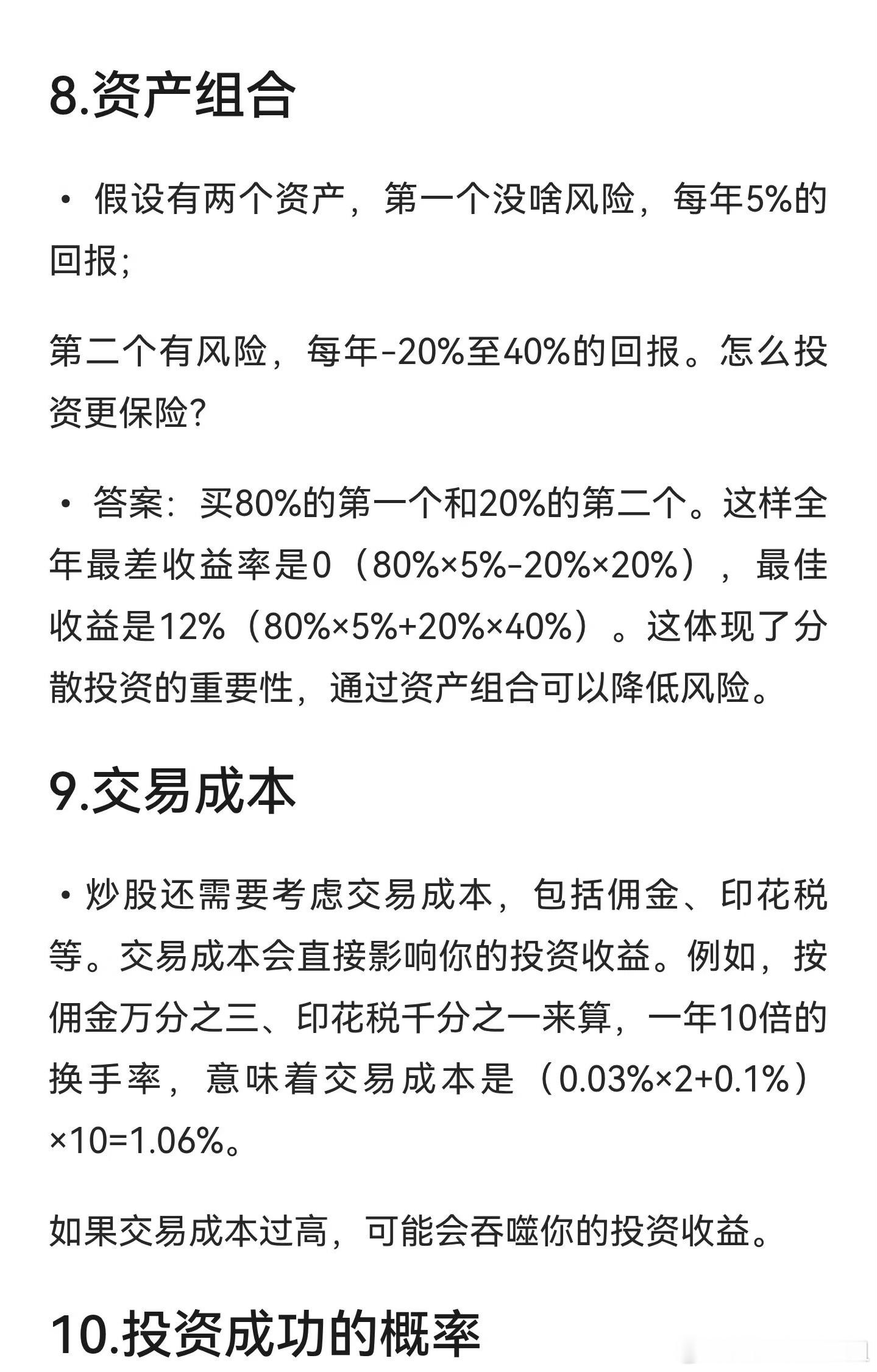 炒股人必须会算的10笔账炒股需掌握收益率、补仓、盈亏、每天赚一点、涨跌停、止盈止损、稳健投资、资产组合、交易成本和投资成功概率等10笔关键账目,帮助优化策略,控制风险,提升收益。