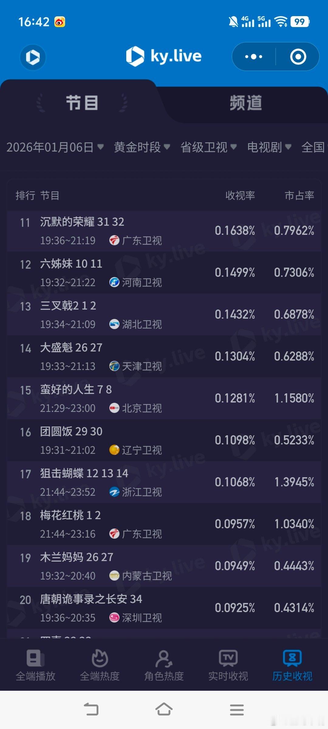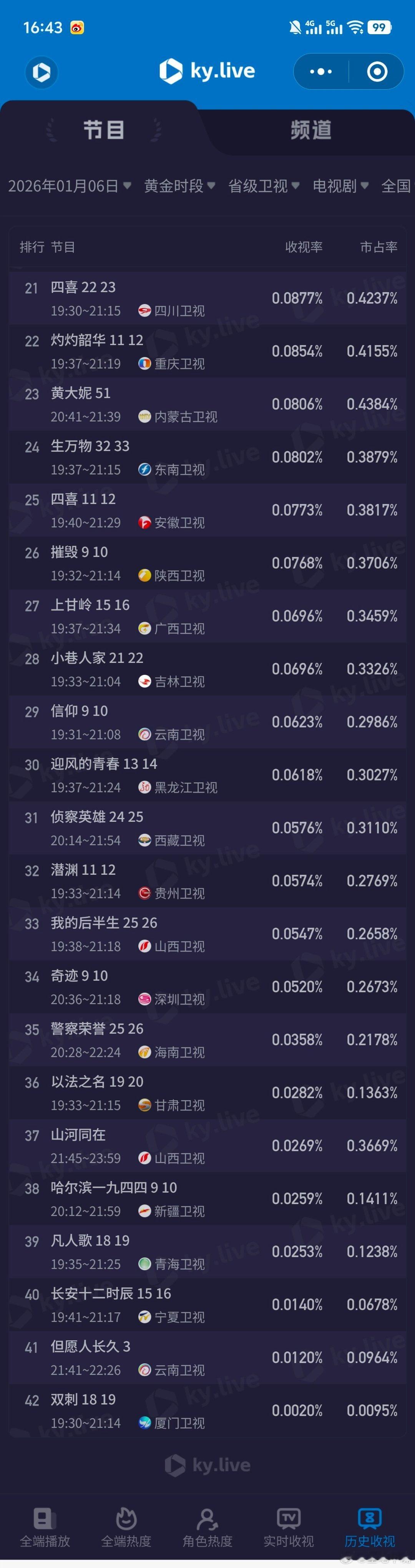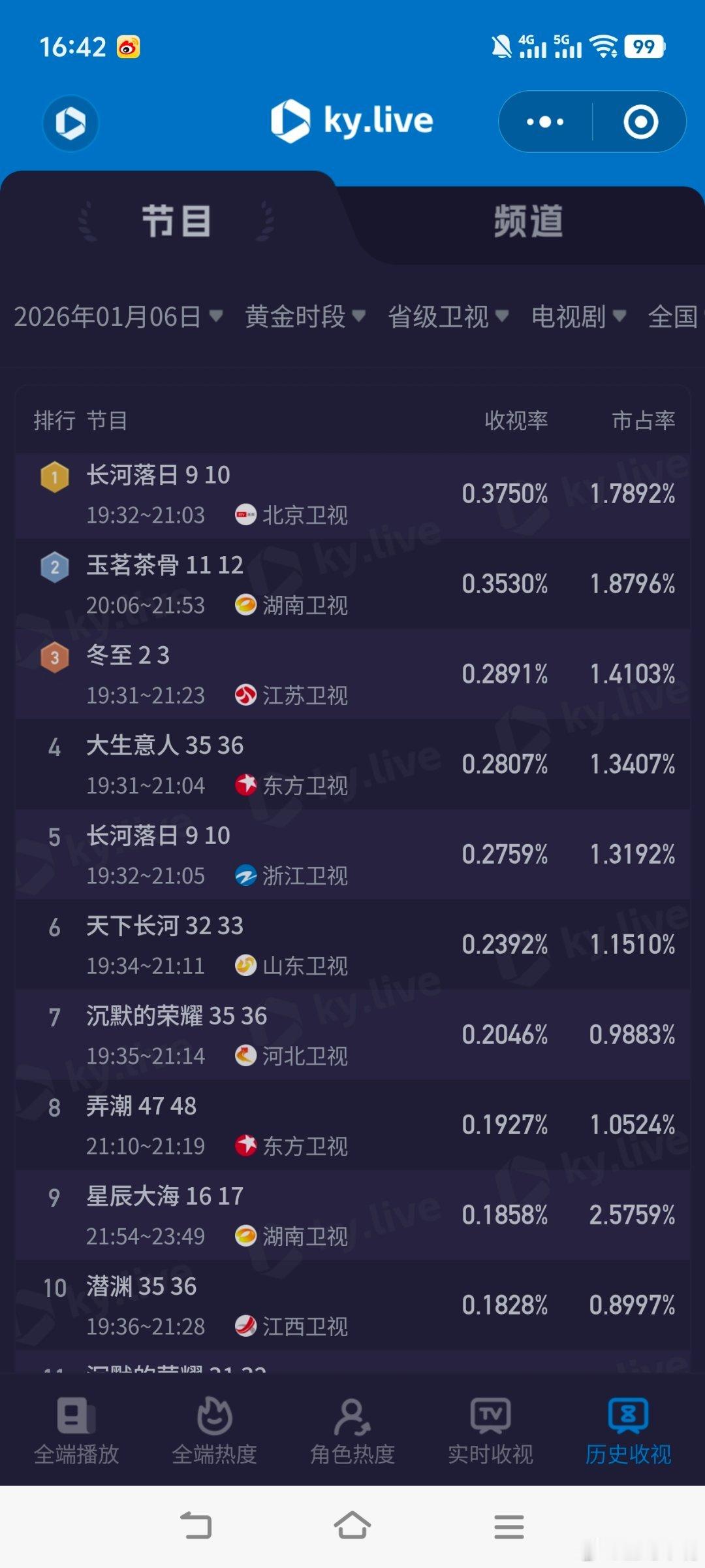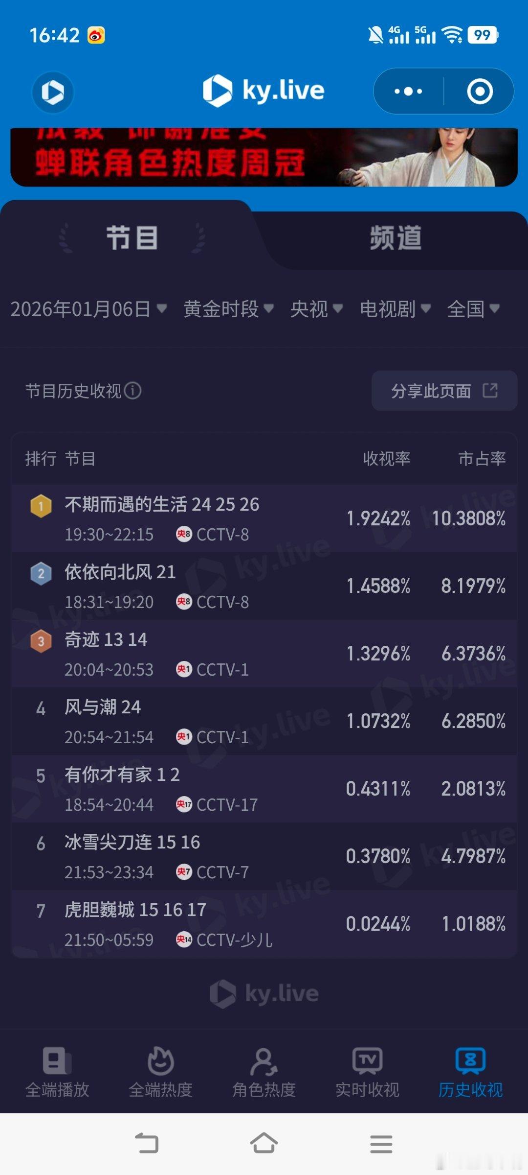 1月6日cvb收视日报《风与潮》新低,玉茗茶骨 集均0.3危!风与潮2.586,酷云1.0732,系数2.410不期而遇的生活1.620,酷云1.9242,系数0.842长河落日京0.383,酷云0.3750,系数1.021长河落日浙0.308,酷云0.2759,系数1.116玉茗茶骨0.274,酷云0.3530,系数0.776冬至0.214,酷云0.2891,系数0.740
