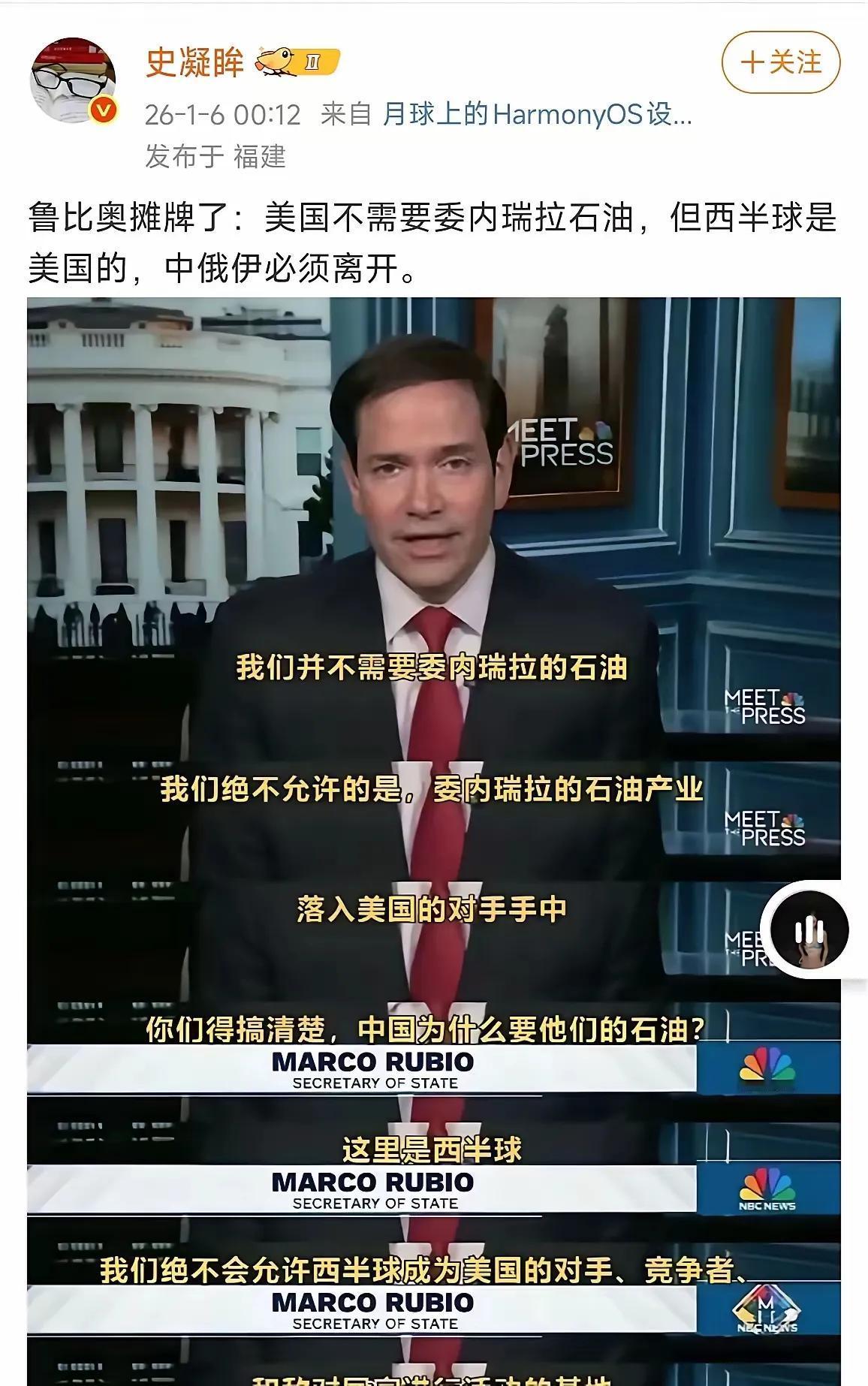美国现在差不多明牌了!鲁比奥公开说∶西半球是美国的,美国不允许西半球有反对美国的力量存在。 言下之意,是不是东半球的事,大漂亮不想掺和太多了,让东大去处理?至少,在东半球老美还没这么明目张胆。 美国现在给人的感觉,就是力量下降之前,趁自己还有威慑力,满世界抢,抢到多少算多少,最后干几票大的。美国务卿鲁比奥 美国务卿卢比奥 美国鲁比奥 鲁比奥中国制裁 马尔科鲁比奥