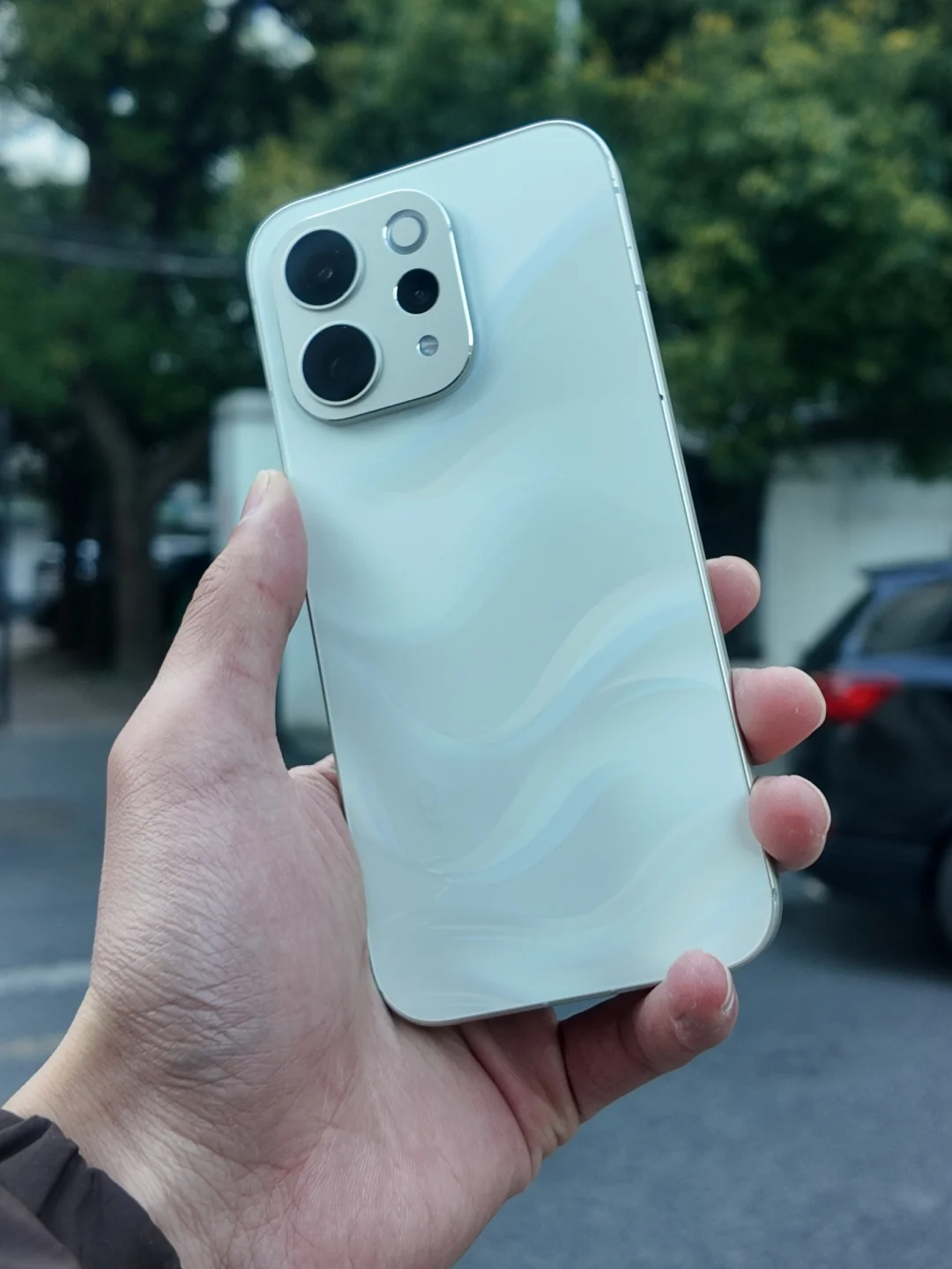 首先该夸得夸,这个纱锻光刻的后盖工艺的确不俗,镜头模组的金属,还有铝合金边框把颜值点缀的很好,不管光线明暗都有质感。