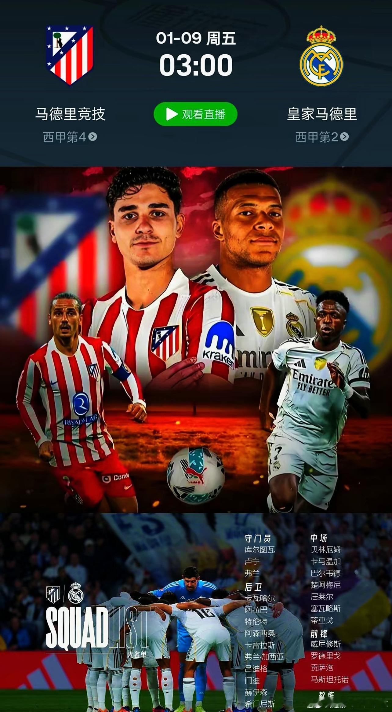比赛:西超杯半决赛 | 🔥 核心情报 & 伤停(划重点):1. 皇马重磅伤停: 姆巴佩(Kylian Mbappe)因左膝扭伤确认缺席本场比赛!这对皇马的进攻线是纸面上的削弱。2. 状态爆棚: 尽管没有姆巴佩,皇马刚在联赛中 5-1 横扫贝蒂斯!阿隆索(Xabi Alonso)提拔的小将冈萨洛·加西亚(Gonzalo Garcia)刚刚上演帽子戏法,状态火热,完美填补空缺。3. 战术克制: 阿隆索执教下的皇马,战术体系比单纯依赖球星更稳固。而西蒙尼的马竞目前联赛仅排第4,防守硬度较巅峰期下滑,且中场加拉格尔(Gallagher)近期陷入转会传闻,军心稍显不稳。方向:负进球数:234比分:02 12 13
