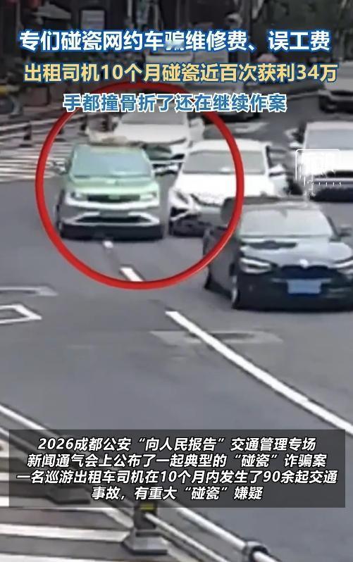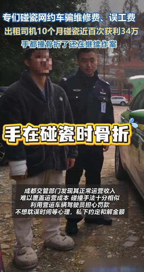揭秘!的哥10个月碰瓷90次狂赚34万 成都街头惊现"碰瓷影帝"!@四川观察 记者从警方独家获悉,一出租车司机10个月制造90起交通事故,涉案金额34万!行车记录仪拍下的画面让人脊背发凉—— 精准碰撞堪比老司机 2025年,杨某驾驶的出租车像装了"定位系统",专挑网约车、货拉拉下手。监控显示,他总能在对方变道瞬间"精准贴车",然后跳下车喊:"你全责!私了赔3000块!" 月入3万的"碰瓷生意" 调查发现,杨某正常跑车月入仅6000元,但碰瓷收入却高达3万。他吃定对方司机怕扣分、赶时间的心理,用"快速理赔"当幌子,甚至自备打印好的和解协议。 铁证如山终落网 交管部门调取160段监控、46份笔录,发现他的碰撞角度、索赔话术如出一辙。面对质问,杨某竟狡辩:"我技术差总追尾不行吗?"直到警方甩出银行流水,他才瘫软在地。 目前杨某已被依法逮捕,这场"碰瓷连续剧"终落幕。网友惊叹:"这简直是现实版《疯狂的石头》!" 你遇到过"专业碰瓷党"吗?快来评论区曝光!点赞提醒司机朋友小心套路,转发让黑心人无处遁形。