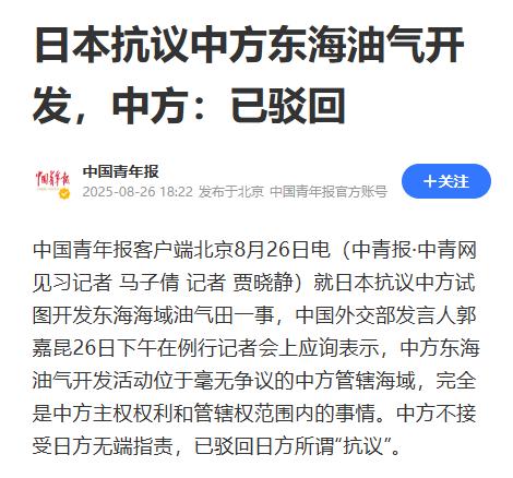 1月7日,日本《产经新闻》突然放出一则“警讯”:中国已经在日中航线附近的东海海域,建成了永久性钻井平台,并启动天然气田开发作业。消息一出,日本外务省立刻“严正抗议”,称中方“单方面推进开发”。 但中方的回应却很直接:我们的平台,建在我们自己的海域,开发天然气,是我们的主权权利。针锋相对,一来一回,东海的水似乎又“浑”了一点。 东海的这片海域,有着极其特殊的战略地位。它不仅连接着中国长江经济带与太平洋,更是日本赖以为生的海上命脉。 东海日中航线承担着日本进出口货物总量的约三分之一,尤其是汽车零部件和精密仪器等高附加值产品的运输,对这条航道的依赖超过六成。谁在这里设设施、建平台,谁就有可能在经济上“掐住日本的咽喉”。 这也是为什么,日本对于中国在这片海域推进天然气田开发,会如此紧张。但事情真像日方说的那样,是“单方面推进”吗?从国际法的角度来看,这种说法并不站得住脚。 《联合国海洋法公约》上面写了,沿海国对其专属经济区内的自然资源享有开发主权。而中国此次推进的开发区域,位于中方主张的专属经济区范围内,完全符合国际法规定。 日本虽然长期主张以“中间线”划分东海专属经济区,但这一主张并未获得国际认可,中方一直坚持“大陆架自然延伸”原则,这也是国际实践中普遍采纳的划分依据。 事实上,早在2008年,中日曾就东海油气开发问题达成“搁置争议、共同开发”的共识。但十多年过去,谈判始终难有实质性进展。 中方多次提出重启谈判,日本却因国内政局摇摆、右翼势力掣肘,一拖再拖。这时候,中方选择在自身主权范围内推进开发,既是对长期谈判无果的回应,也是一种能源战略上的主动出击。 从能源安全的角度看,中国的动作无可厚非。中国已经探明的东海气田储量超过300亿立方米,设计年产量可达15亿立方米,足以满足日本冲绳及西南诸岛的天然气需求。 而中国的海上天然气田开发技术,已达到国际先进水平,整体效率比日本现有项目高出约20%。这意味着,即便日本想“分一杯羹”,也很难在效率和成本上与中国竞争。 日本的焦虑,其实也不难理解。作为世界上能源对外依赖度最高的国家之一,日本的能源进口依赖率高达88%,液化天然气几乎全部依赖进口,是全球最大的LNG买家之一。东海一旦被中国率先开发,未来的能源博弈中,日本的话语权无疑会被进一步削弱。 更现实的问题是航运成本。初步测算显示,如果船舶需要避开东海开发区域,平均航运成本将上升8%,全年额外支出可能超过200亿日元。这部分成本最终会转嫁到日本制造企业和消费者身上,尤其是在华日企,将直接承担这笔“绕行账单”。 苏州、无锡等长三角制造重镇,汇聚了大量日本工业企业。这些企业的原材料和成品运输,极度依赖东海航线。一旦物流成本上涨,即便只有1%的波动,也会导致企业利润率下降约0.3%。在竞争激烈的中国市场,这0.3%的利润,可能就是生死线。 所以,日本的“抗议”,更多是出于现实焦虑,而非法律依据。但这种抗议能带来什么?从过去经验看,日本每一次对中国的海洋开发提出抗议,中方都予以坚决回绝,并继续按计划推进。 而对中国来说,东海开发更像是一次能源布局的“硬着陆”。在“去美元化”、地缘冲突和全球能源供应链重构的大背景下,自主掌控近海资源,是确保能源安全的关键一步。一旦开发成熟,不仅可以减少对中东和俄罗斯能源的依赖,还能在东亚能源交易中占据更主动的位置。 从更长远看,如果东海气田能够顺利运营,中国有望在未来数十年内构建起以东海为支点的区域能源网络。这对于依赖进口、市场分散的日本而言,无疑是一次战略性的压缩。 当然,中日之间并非没有合作空间。东海资源本身就具有高度互补性。中国有开发能力和市场,日本有资金和技术。若双方能在《联合国海洋法公约》框架下,重启“共同开发”谈判,让东海真正成为“和平、合作、友好之海”,这无疑比一纸抗议更有意义。 日本外务省:发现中国东海油气田开采船展开活动,已提出抗议——俄罗斯卫星通讯社2026年1月8日, 09:57