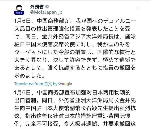 日本出来回应了,态度非常气愤!1月7日,日本外务省声称,1月6日,中国商务部宣布强化对日本两用物品的出口管制措施。同日,日本外务省亚洲大洋洲局局长金井向中国驻日大使馆公使衔参赞提出强烈抗议,称此次专门针对日本的管制措施与国际通行惯例严重不符,完全不可接受,对此深表遗憾,并要求中方撤回该措施。 中国商务部2026年1月6日发布公告,禁止所有两用物项对日本军事用户、军事用途及有助于提升日本军事实力的最终用户出口。这一措施针对日本领导人近期涉台言论,包括高市早苗在2025年11月国会答辩中表示台湾有事可能构成日本存亡危机事态,暗示日本可能在台海冲突中采取行动。中国外交部对此提出严正交涉,认为此言论粗暴干涉中国内政。公告覆盖金刚石、第三代半导体等关键材料,这些物项在导弹制导、高功率激光武器、雷达等领域发挥作用。日本作为二战战败国,按照战后安排不应发展军事工业能力,中国此举旨在防止日本军国主义复苏。 日本外务省1月7日表示,中国商务部宣布管制后,外务省亚洲大洋洲局长金井正彰向中国驻日大使馆公使施泳提出抗议,要求撤回措施。金井称此次仅针对日本的措施严重偏离国际惯例,无法接受。日本共同社报道,金井强调日本企业依赖这些物项用于生产,突然变动将扰乱供应链。中国商务部新闻发言人回应,此举为维护国家安全和履行国际义务,日本应正视自身错误言论。日方官房长官木原稔在记者会上重述抗议内容,指出措施与国际规则不符,敦促中方回应关切。 中国商务部1月7日发布2026年第2号公告,对原产于日本的进口二氯二氢硅发起反倾销立案调查。此调查源于2025年12月8日唐山三孚电子材料有限公司代表国内产业提交申请,提供日本产品倾销和损害证据。商务部审查后确认符合反倾销条例要求。倾销调查期为2024年7月1日至2025年6月30日,产业损害调查期为2022年1月1日至2025年6月30日。通常在2027年1月7日前结束,特殊情况可延长6个月。二氯二氢硅用于芯片制造薄膜沉积,纯度需达99.999%以上,主要生产逻辑芯片、存储芯片和模拟芯片。日本企业长期占据高端市场,中国作为全球最大半导体生产国,对此类材料需求持续增长。 国内企业如唐山三孚已建成年产500吨电子级二氯二氢硅生产线,国顺硅源等产品达到国际先进水平,对日本进口依赖度从60%以上下降。申请人证据显示,2022年至2024年,日本进口二氯二氢硅数量上升,价格下跌31%,对国内产业造成损害。如果裁定倾销成立,日本产品将加征反倾销税,市场份额可能被国产或其他厂商取代。日本半导体材料、设备和芯片制造上下游产业将受影响。中国海关数据显示,日本对中国半导体材料出口依赖度高,失去中国市场将压缩利润空间。 中方反制措施精准,仅针对半导体关键材料和军事相关物项,未波及民生消费品。此举回应日本涉台言论,限制日本借民用技术发展军力。中国社会科学院报告显示,2026年中日货物贸易互补性显著,中国对日本依赖产品包括半导体制造设备和材料,日本对中国依赖产品包括家电和电池。中国加快完善半导体产业体系,保护国内产业发展,减少对国外关键材料依赖,构建自主可控产业链。日本半导体供应链面临断供风险,业内人士称将加大自主创新与国产替代。 高市早苗政府面对管制和调查,感受到半导体产业压力增大。她继续处理政务,但未撤回涉台言论。金井正彰继续外交工作,参与后续交涉。日本企业调整供应链,监测调查进展。中国外交部发言人表示,日本应停止涉台挑衅,否则需承担后果。 中日经贸关系走势展望显示,2026年货物贸易进出口同比增长,但摩擦加剧。中国对日本出口管制包括稀土等品项,日本商会回应称将评估影响。日本限制对华半导体出口,倒逼中国自研力度加大。中国大陆对日本光刻、刻蚀及热处理设备依赖度高,2022年进口数据显示依赖显著。日本控制先进光刻胶和封装材料市场份额90%,限制出口将打击中国晶片自给自足努力。