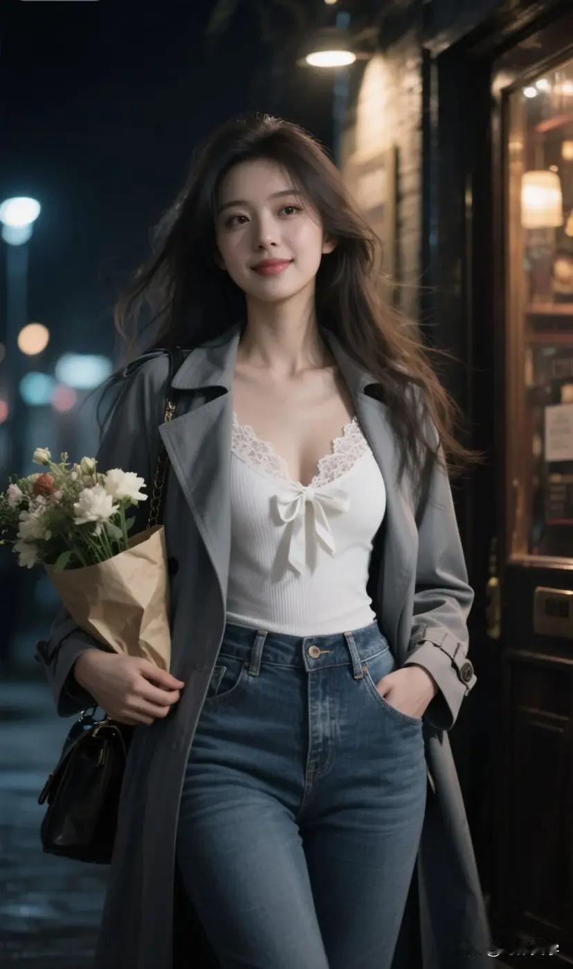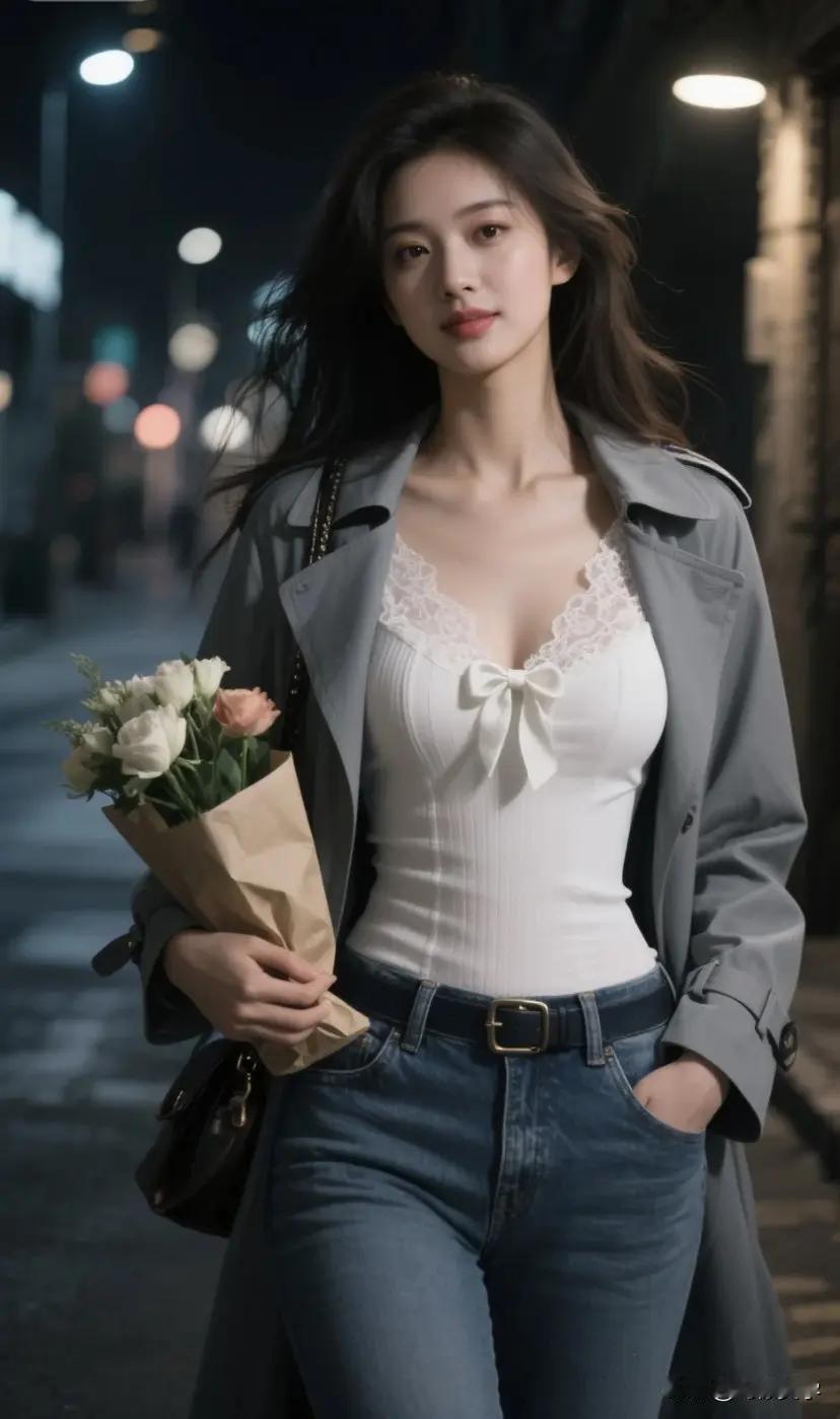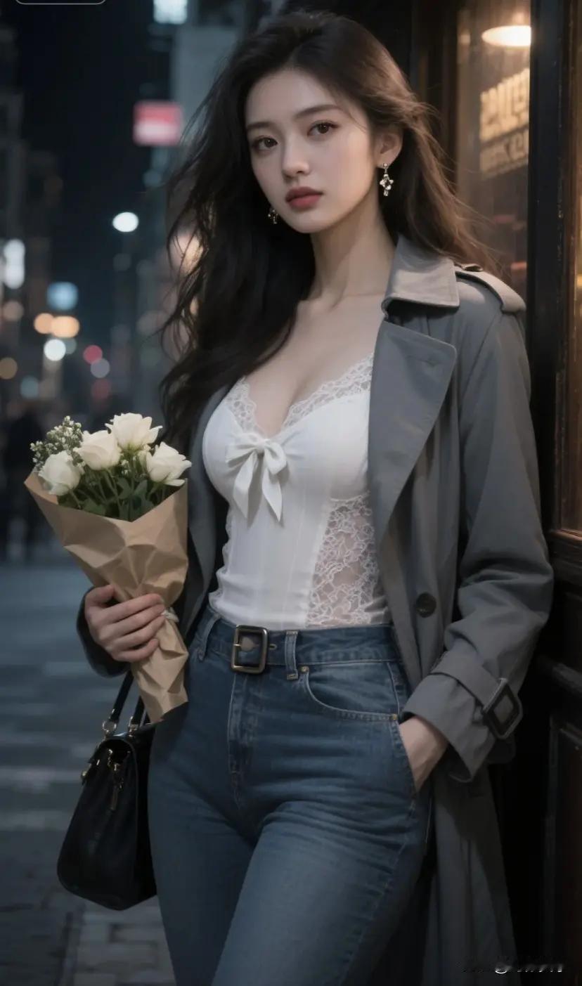 春日穿搭指南:白色高腰裤+蓝色蕾丝衫,清新自然,时尚百搭!🌸👗👠