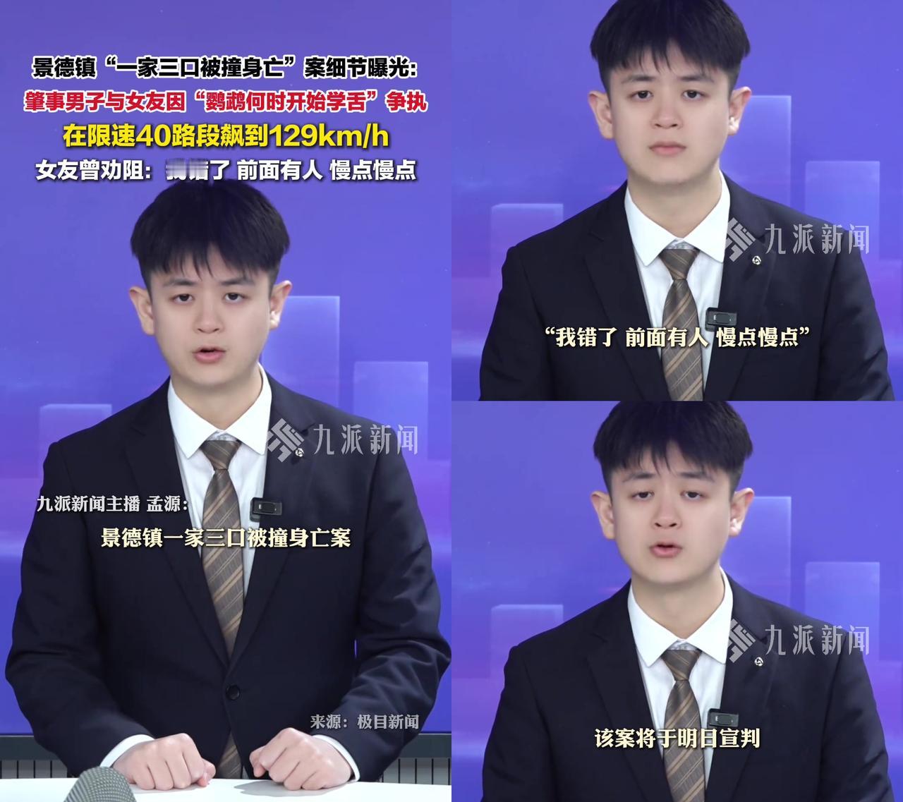 就因为“鹦鹉啥时候学舌”吵架,有人把车飙到129,撞死一家三口! 景德镇这案子细节刚爆的时候,我手都抖,肇事男和女友争“鹦鹉啥时候开始学说话”,直接在限速40的路段踩油门到129km/h,女友喊“前面有人,慢点!”他还骂“烦不烦”,结果一头撞上去,一家三口全没了,连刚会爬的宝宝都被撞得头首分离。。 现在网上最热议的是“凭啥不能直接毙了他”?其实根本不用讲法律术语,就问一句:他是“不小心”还是“故意作”? 交通肇事是“我以为能躲开”,但这货是吵架气昏了头,故意把车飙到三倍限速,明知道前面有人还不管,这哪里是“失误”?明明是“我烦了,爱谁谁”!你把马路当情绪垃圾桶,把别人的命当出气筒,这能算“过失”? 有人留言说要凌迟要头首分离,大家不是狠,是这祸闯得太不是人,被害的宝宝才多大?刚会抓妈妈的手,现在连全尸都没;被害夫妻是独生子,俩家庭直接“绝后”,肇事者的爹妈现在哭着求谅解,早干嘛去了?教出个“一点小事就失控,拿别人命撒气”的巨婴,现在反过来毁了两家! 最恶心的就是这种“巨婴式愤怒”,自己的情绪比天还大,别人的命比草还轻。鹦鹉学舌的破事值得拿三条命换?怕不是脑子被鹦鹉啄了! 明天就宣判了,大家说,这种拿马路当泄愤场的人,该给个啥结果?