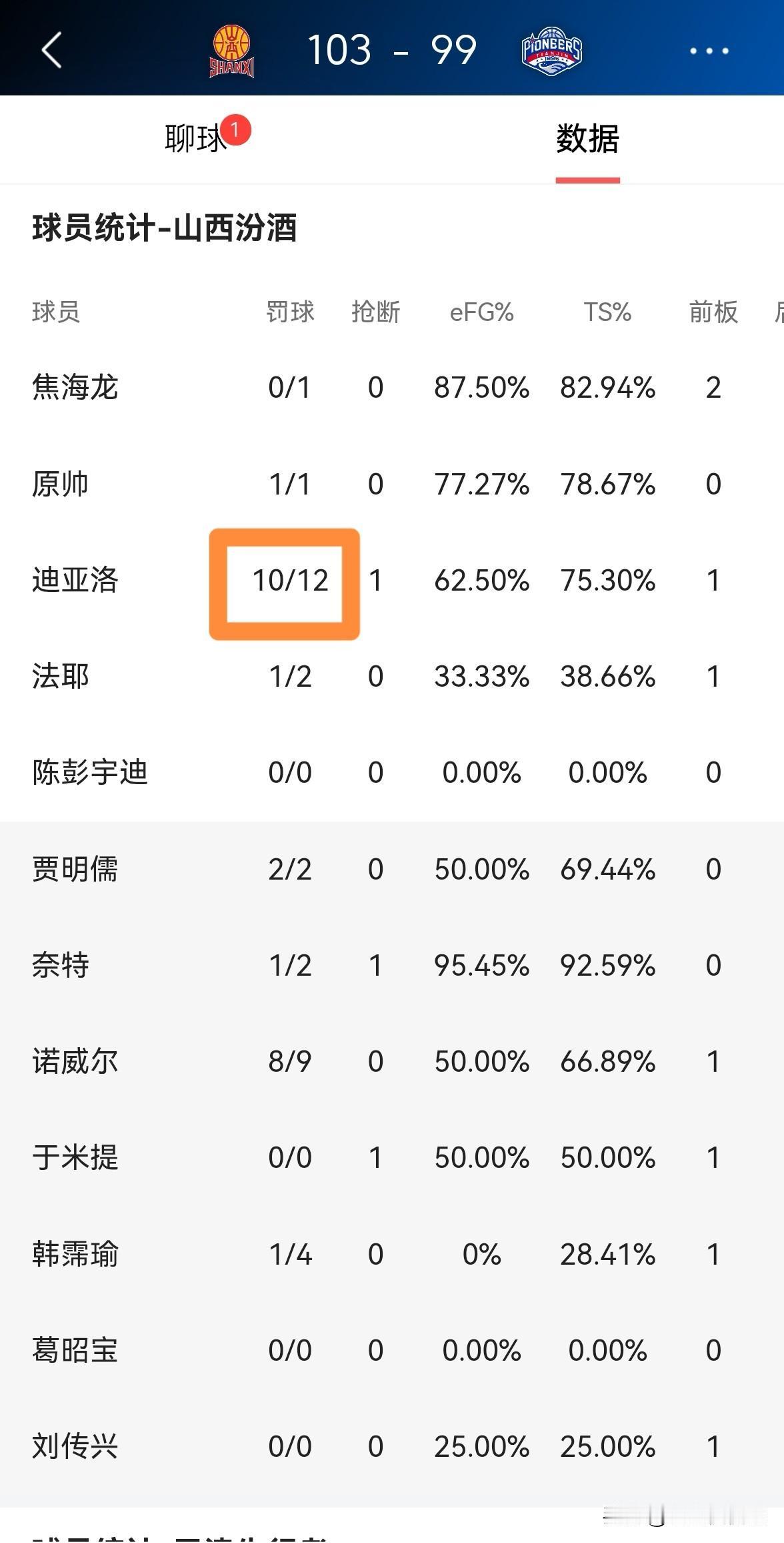 山西汾酒外援迪亚洛真是一台罚球机器!在今天山西汾酒主场以103:99力克天津先行者的比赛中,迪亚洛在短短的19分钟里获得了多达12次罚球,他俨然就是CBA的亚历山大。 整场比赛下来,迪亚洛首发出战19分钟,投篮8中5,其中三分球1中0、罚球12中10砍下20分3篮板3助攻1抢断,他的场上正负值为-9。 虽然本场比赛迪亚洛的冲击力十足,但是当他在场上的时候球队一直输分,因此迪亚洛在第四节比赛中惨遭潘江教练的弃用。