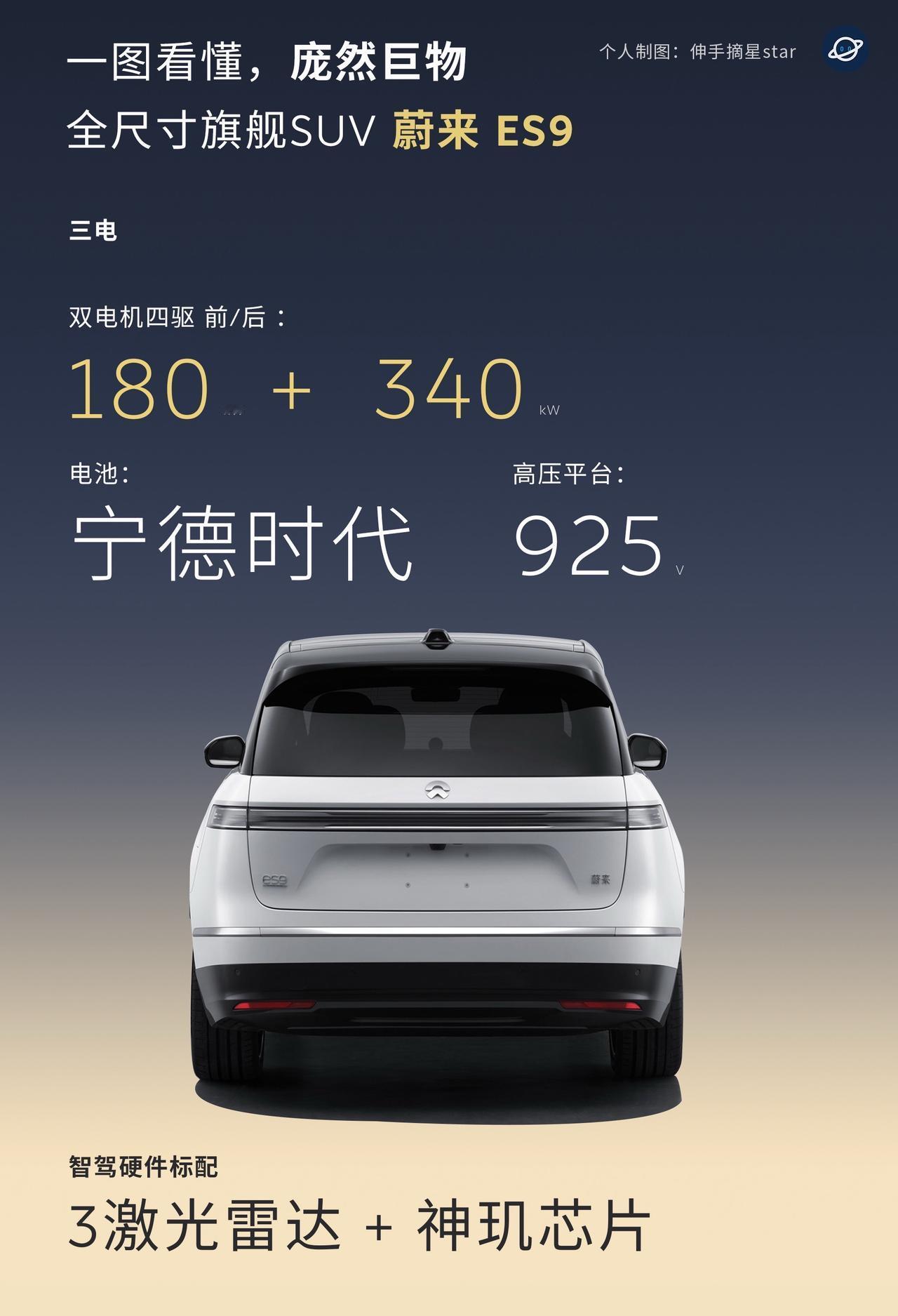 蔚来百万级旗舰SUV,ES9来了5米4 级。 ES9尺寸很大大大大大大,也很克制! ET9有的领先技术,ES9都有。 新车 蔚来ES9 蔚来 新能源汽车