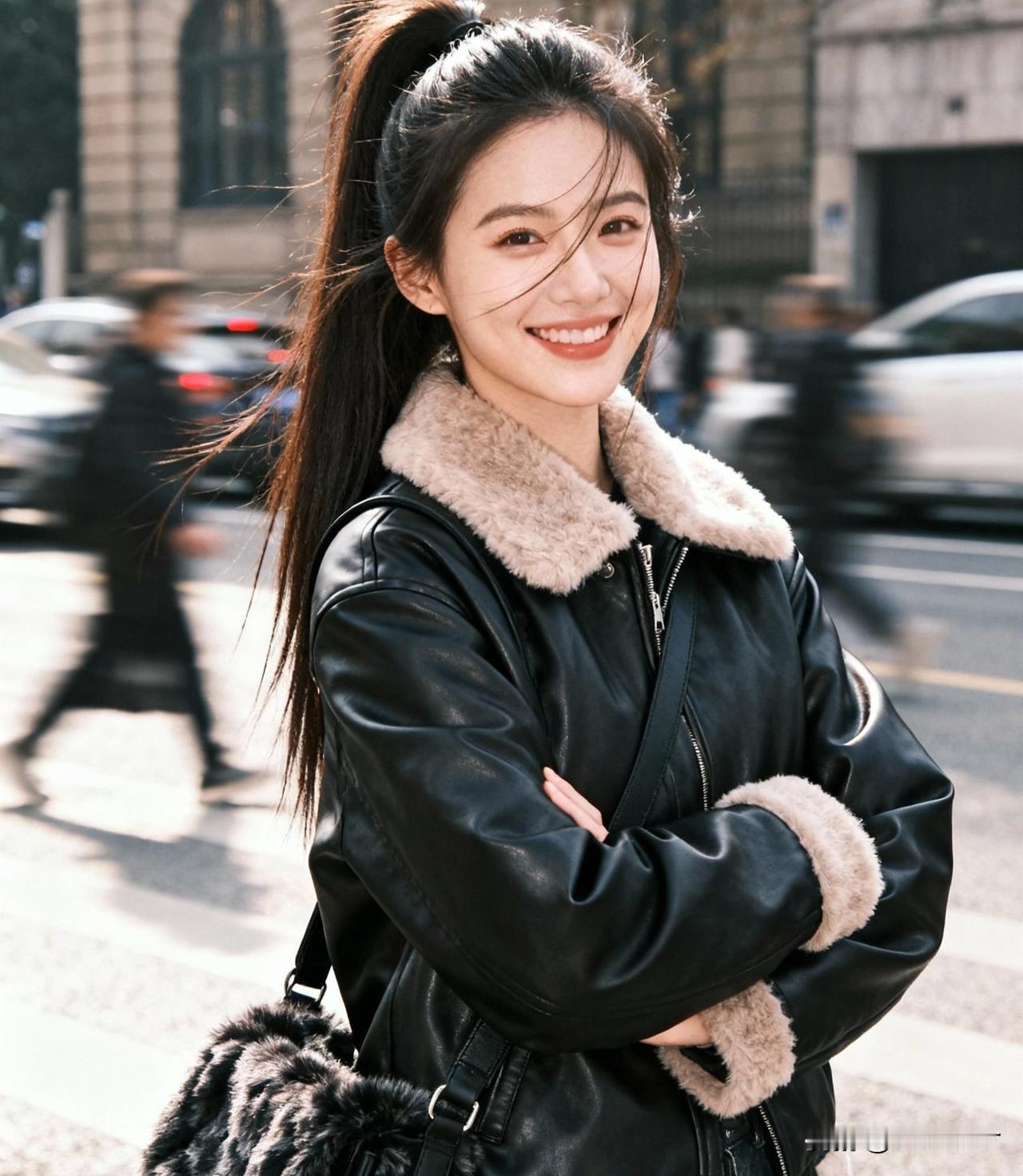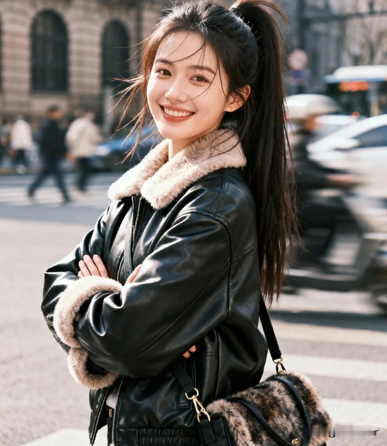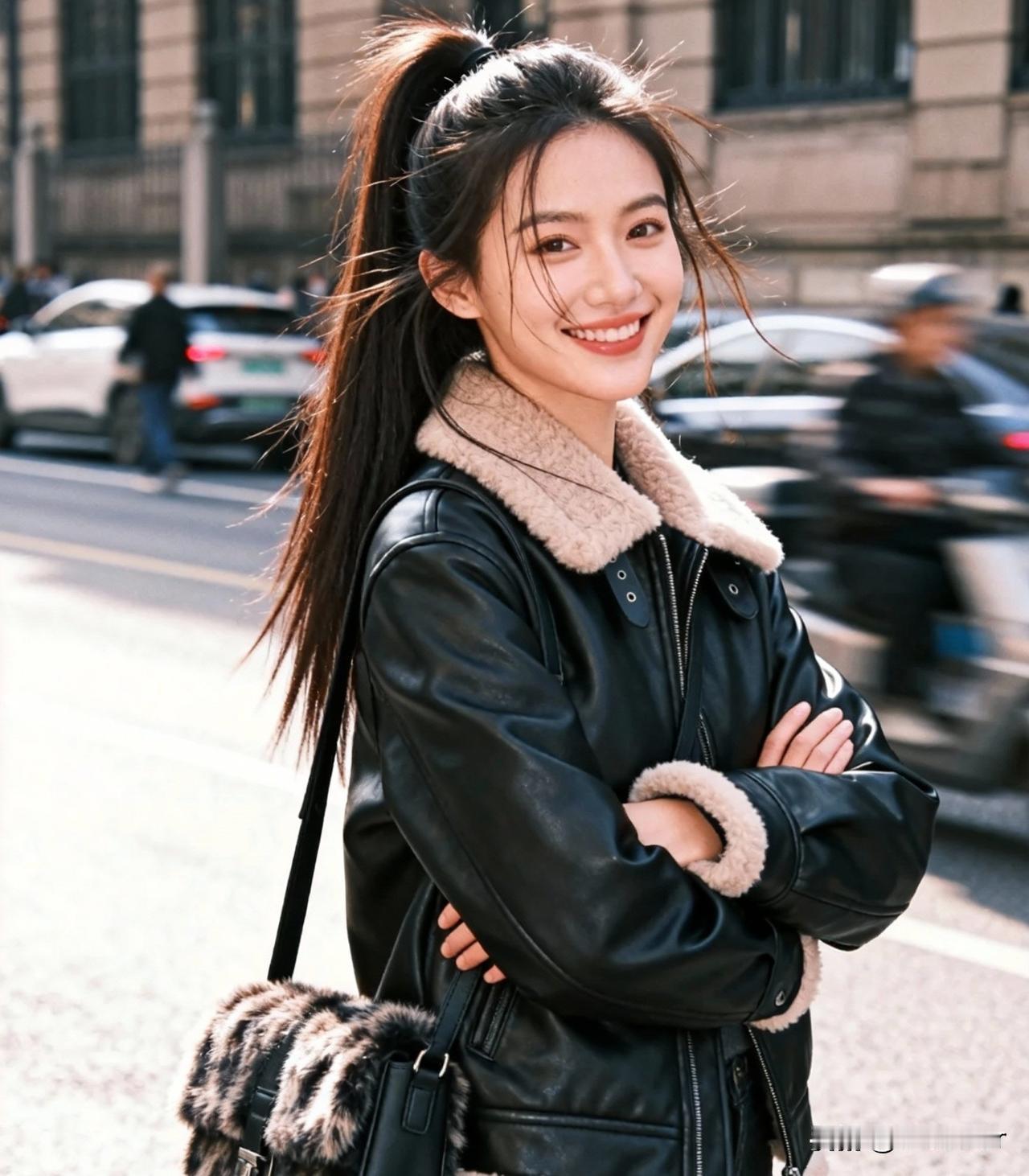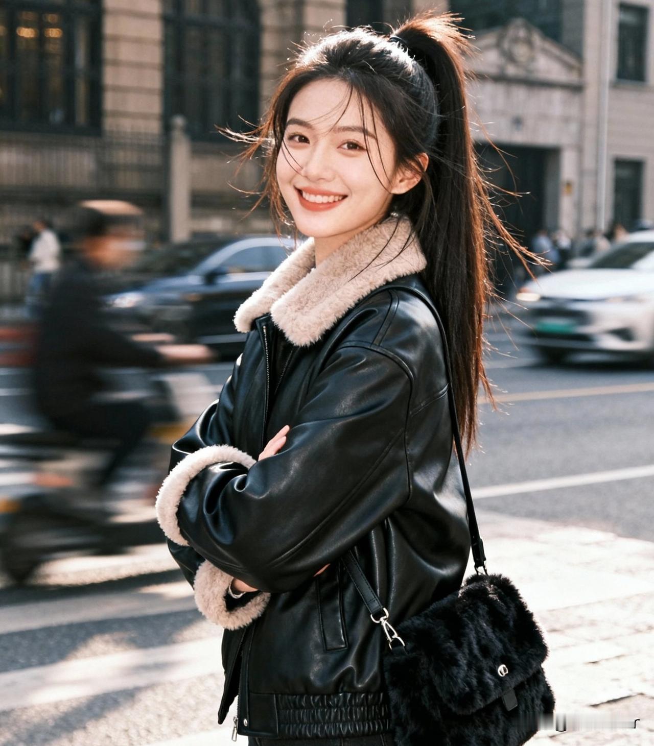 秋日校园少女,温柔蓝毛衣,背包轻装上阵🍂💙📚