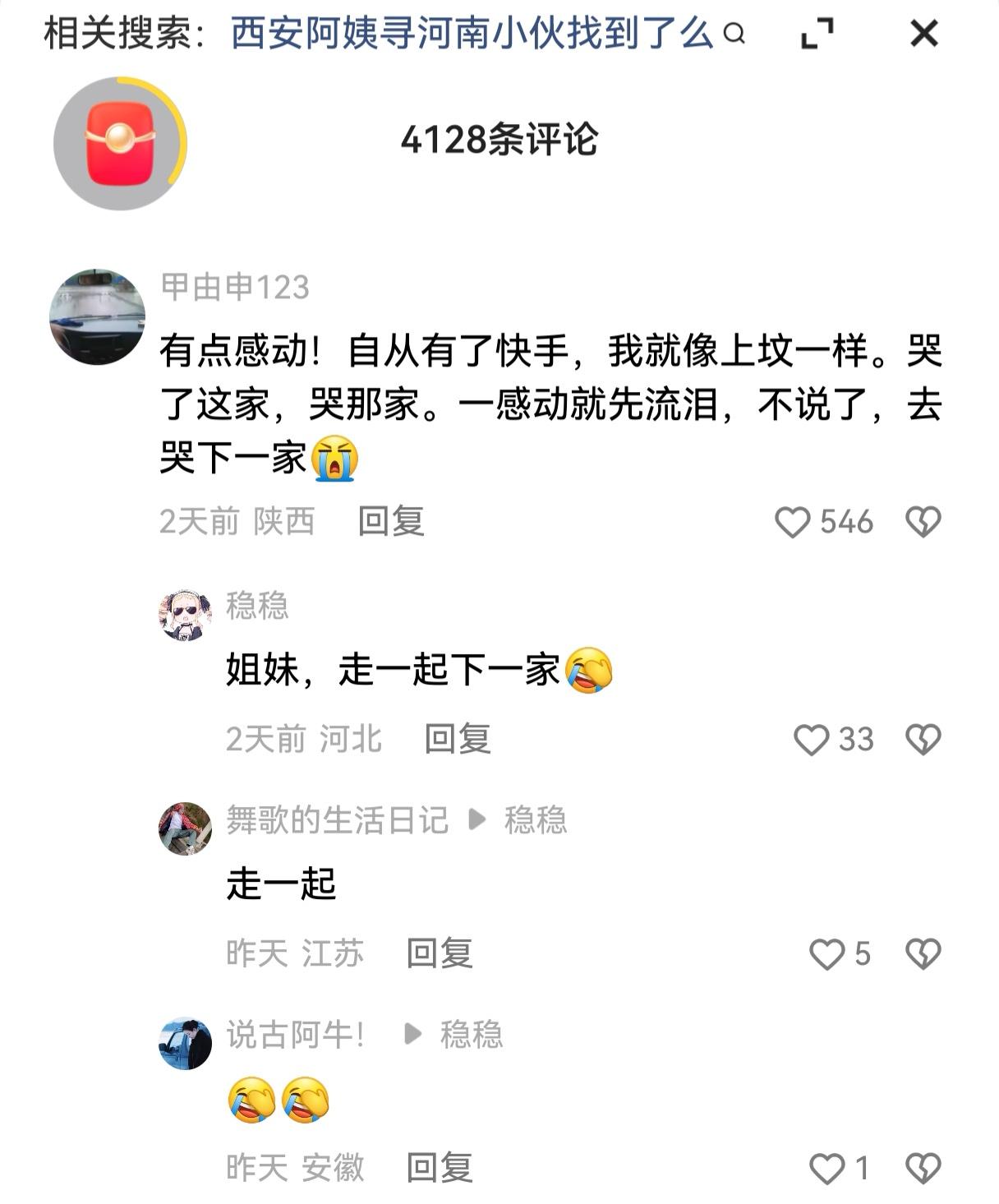 网上感人的故事太多了。网友说,“自从有了快手,就像上坟一样,哭了这家哭那家,一感动就先流泪。” 最后还来了一句:“不说了,走,去哭下一家。” “姐,一起去。” 这些网友说的是实话,我很有同感。刚刚看了一个视频,正掉泪的时候,看到了网友说的那些话。 之所以掉泪,是被这些正能量的视频感动了,是被那些无私的爱共情了。 这是社会的需要,更是大众的需要。多一份正能量,就会多一份和谐。