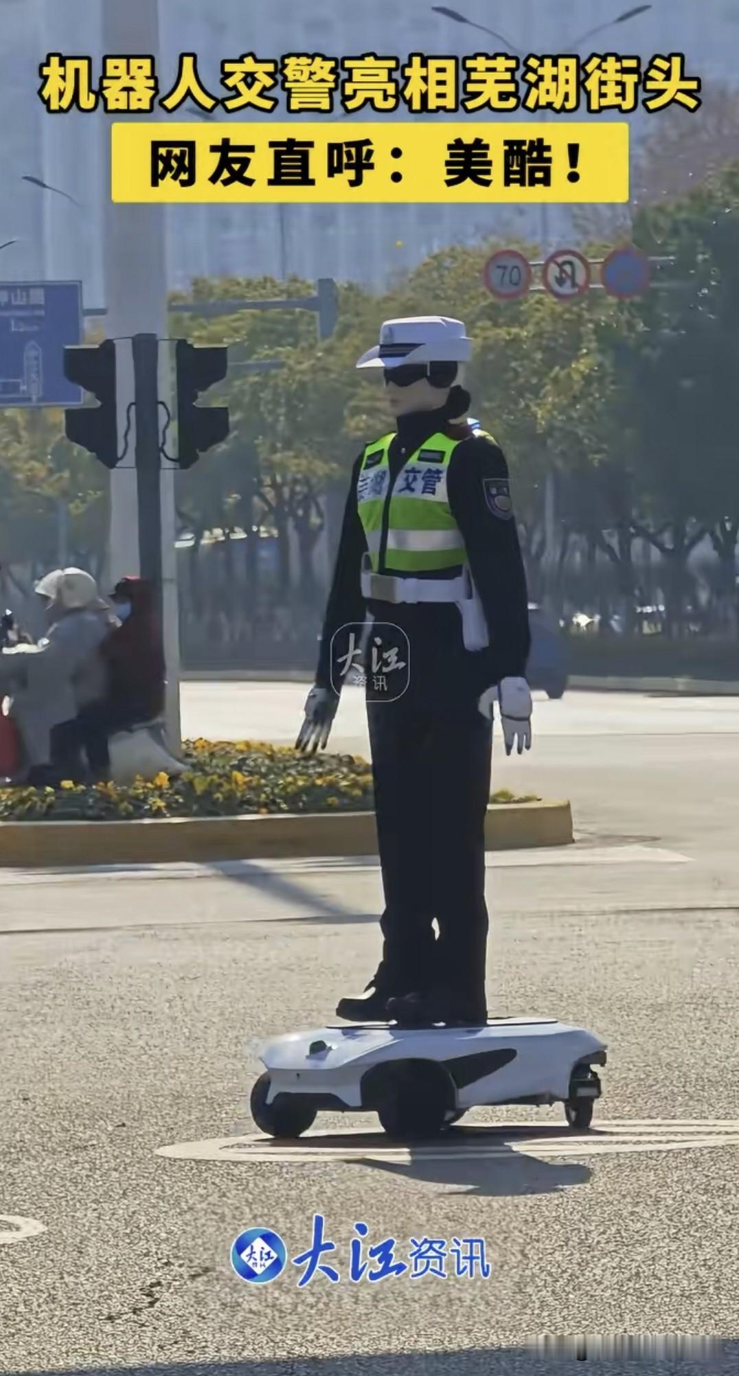 我就想礼貌的问一句, 机器人交警为啥是女性形象,而且还要踩平衡车呢? 简直又酷又飒,站在马路中央绝对是焦点,但凡你要是违章闯红灯了,她踩着平衡车一溜烟就能追上你,想跑?门都没有! 真没有想到,AI时代,这样下去连执勤交警都要下岗了。