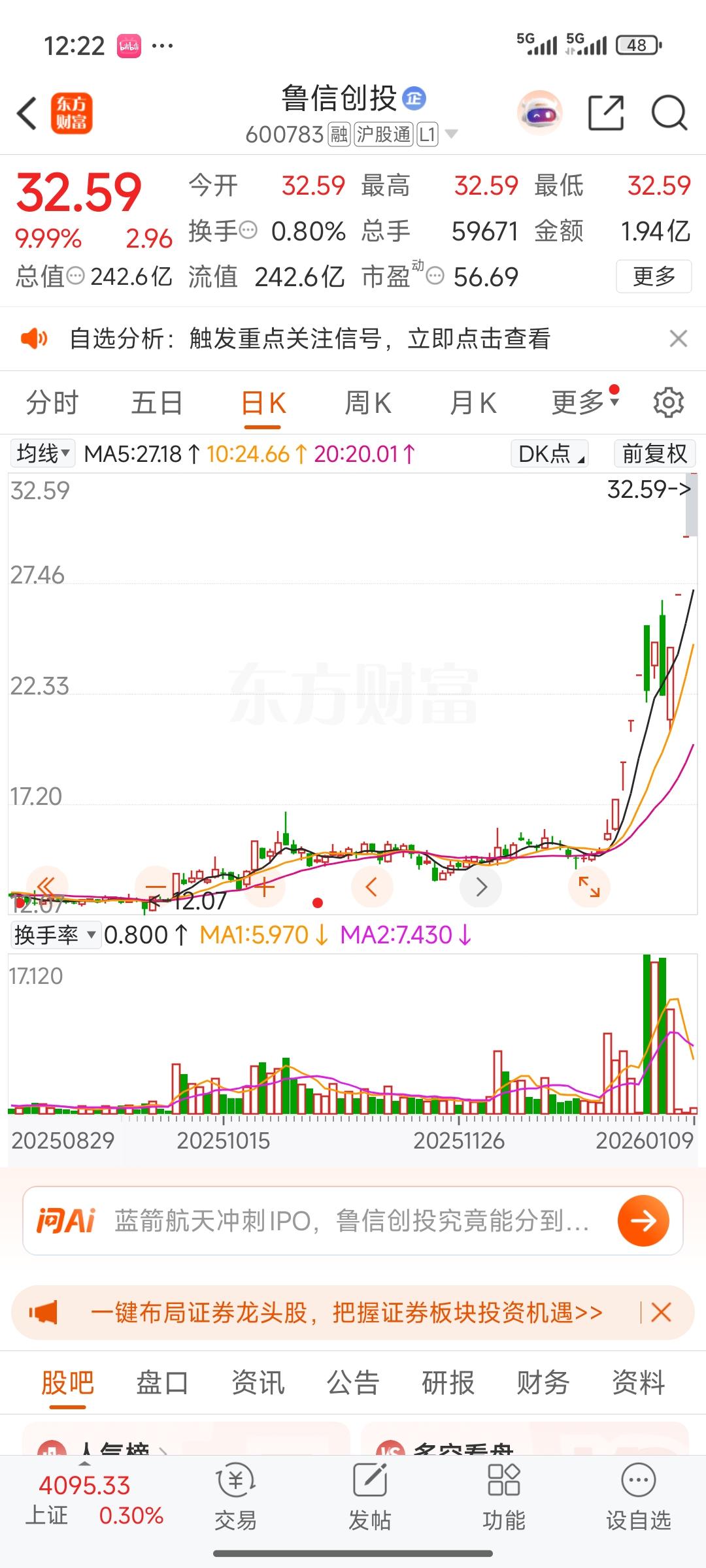 作为蓝箭航天的创投概念相关股,目前金风科技和鲁信创投表现极为强劲,已经连续四五个交易日涨停,鲁信创投更是达到了8个涨停。然而,同样具备该概念的电广传媒,目前仅上涨20-30%。我认为它存在补涨的可能性,而且电广传媒还持有其他商业航天航空概念的股份,同时具备核聚变和机器人的创投概念。所以我觉得电广传媒的股价可以看高一线。 我今天在其最近涨停时买入了一点,目前稍有被套,但我对它仍有信心。股友们怎么看? 航空航天板块 航天科技控股 蓝箭航天 商业航天低价股 中国蓝箭航天 蓝箭科技 低空通信概念股