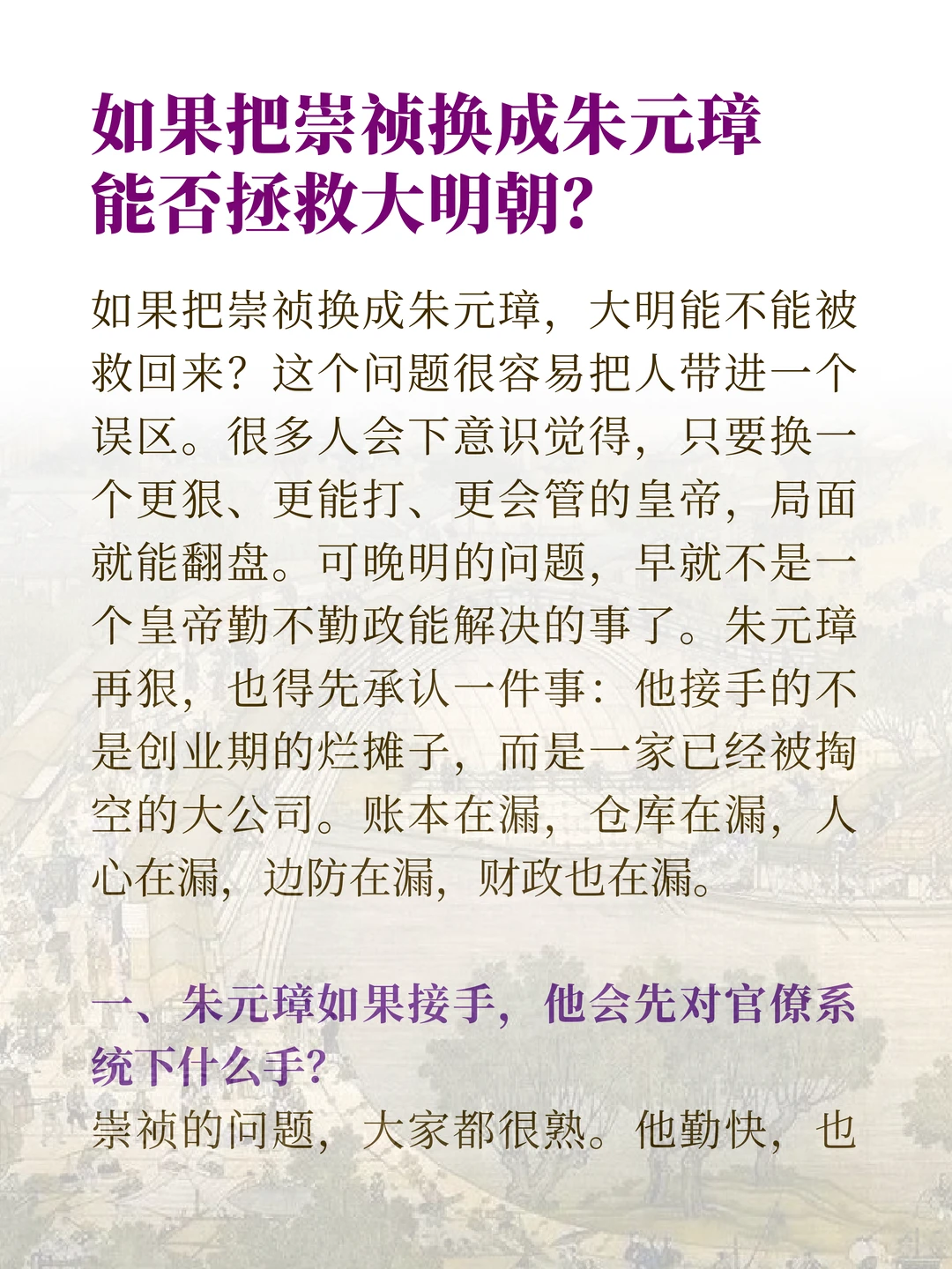 待定 6 2026-01-09 23:35 随便找个搓麻将的烂赌徒,水平太差也不要紧,就不会亡国!崇祯大帝杀了宦官杀武将,杀了武将杀文臣,自家子女也是杀杀杀,对于百姓一直重税,老百姓死了一个又一个省的大批量斩杀线,这做法,不亡,难!