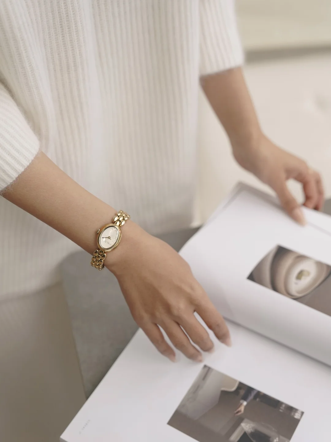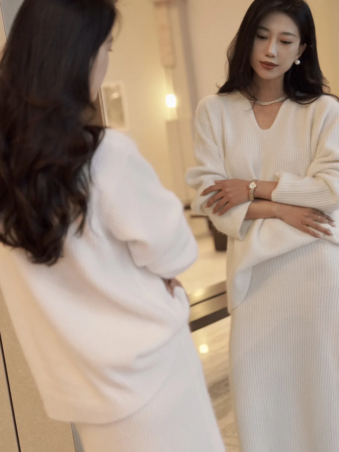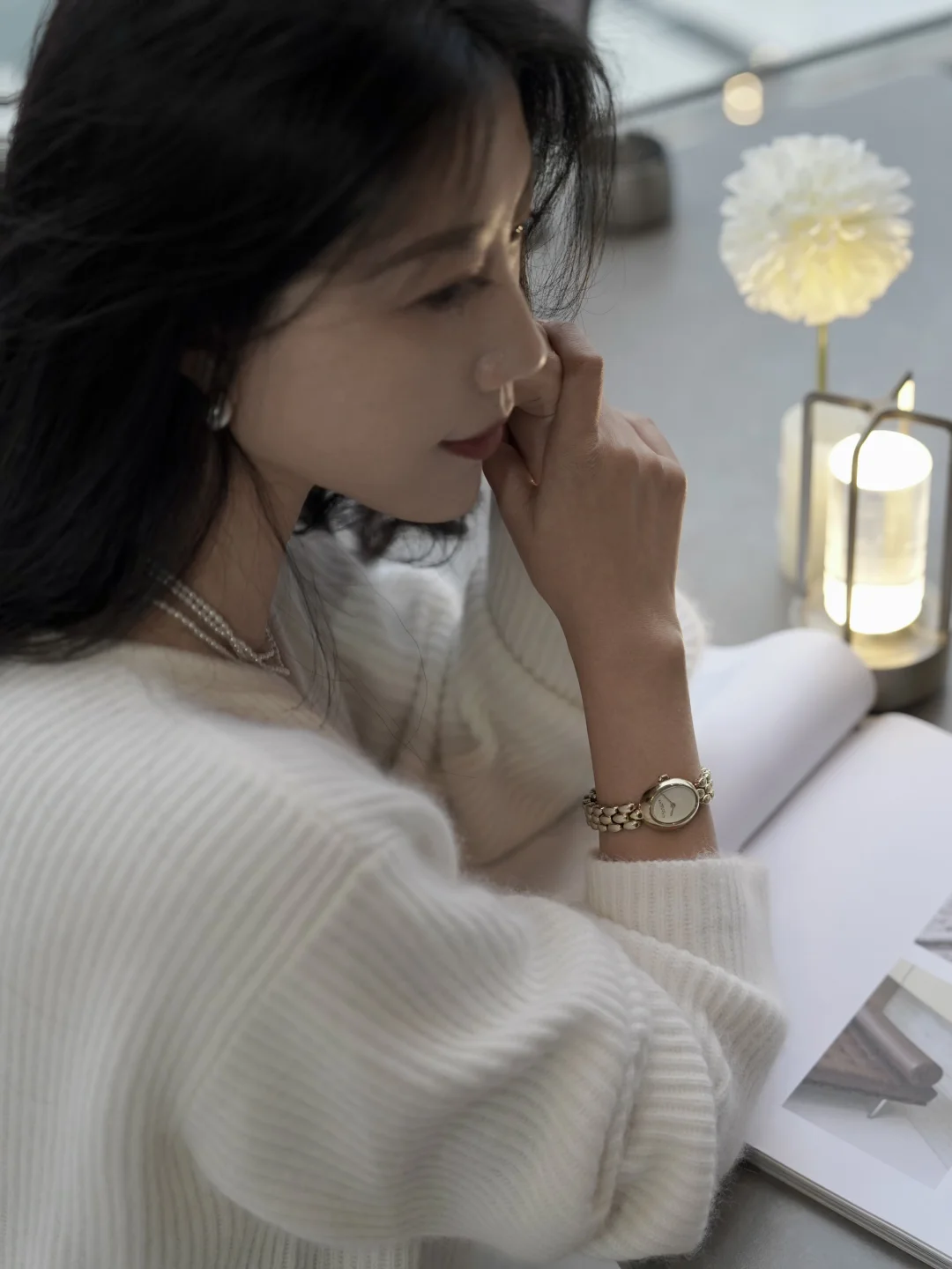餐厅暖黄桌灯下,光落进表盘,细密针织开衫的绒毛也在逆光里柔软浮动。他目光扫过我手腕:“今天的衣衫和手表都挺适合你。”