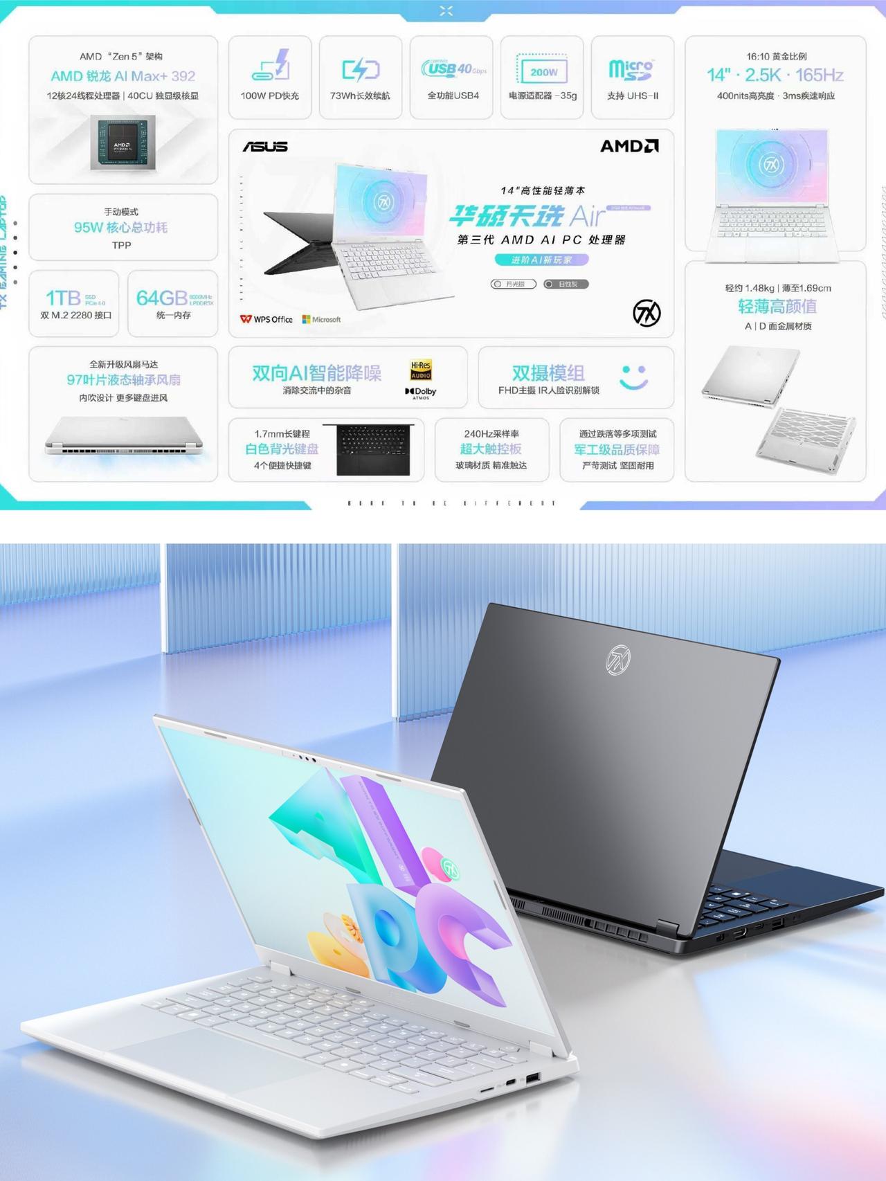 有无大佬看看👀华硕新出的天选Air咋样? 有无懂哥说说新出的华硕天选Air 2026? 处理器换了一颗很猛的AMD锐龙AI Max+ 392,独显直接没了... - 仔细看了一下官方数据,AMD锐龙AI Max+ 392这颗CPU不仅性能提升了,它集成的核显性能居然接近RTX 4060!?还直接标配了64GB超大内存 这波是用独显换核显+大内存,明显是冲着跑AI、剪视频、搞多任务处理去的吧?对于不玩大型游戏,但需要剪视频、跑代码、做设计的同学来说,可能更实用了。 - 少了独显发热,续航应该会好很多,加上本子依然很轻薄,重量才1.48kg,日常办公学习、轻度创作肯定更舒服了,适合背着去图书馆或咖啡馆。 - 大家觉得,全能本这个配置方向OK吗?来聊聊!