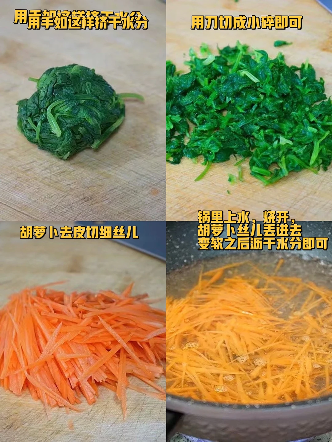 10. 胡萝卜去皮切细丝儿,锅里上水,烧开,胡萝卜丝儿丢进去变软之后沥干水分即可